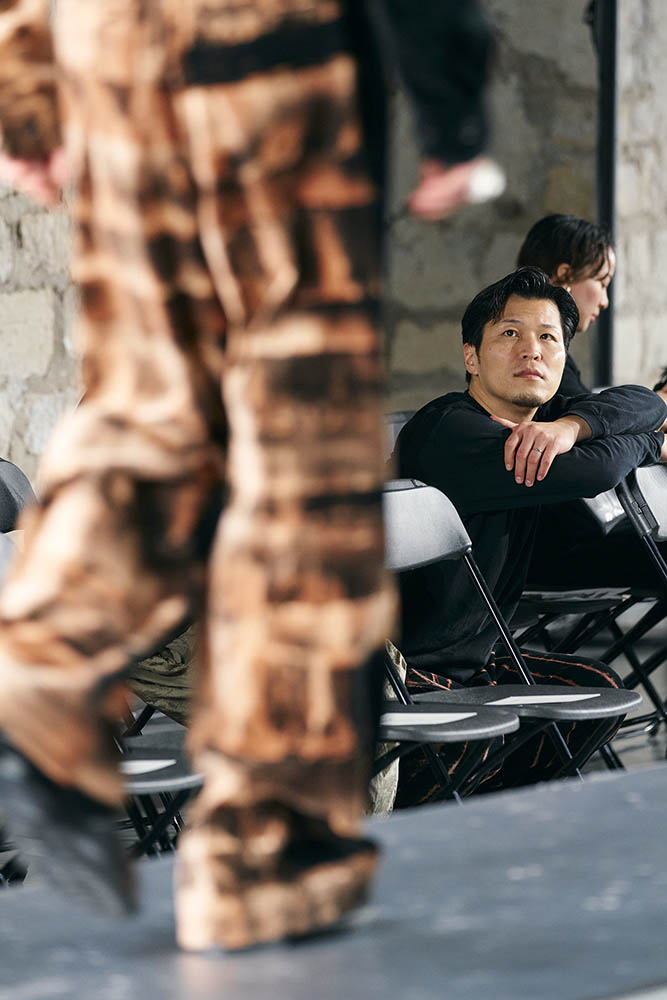 ショー当日、リハーサル会場に足を踏み入れると、研ぎ澄まされた空気のなか、ランウェイをまっすぐに見つめる新城の姿があった。タークのヘアメイクを担当するのは今回で4回目。デザイナーの森川との対話は、昨年10月からすでに始まっていたという。