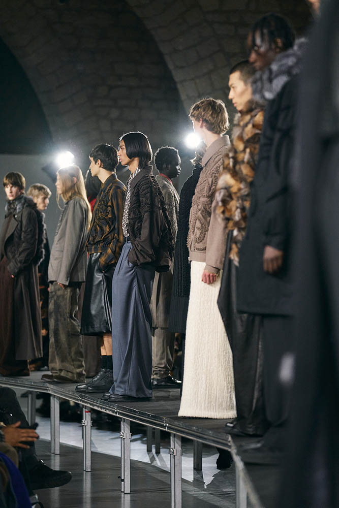 ショーにおいてヘアメイクは、デザイナーの意図を観客へと橋渡しする最前線でもある。現場で12人のヘアメークチームを率いた新城は、ひたすら任務に徹した。ランウェイ直前のバックステージに、過剰な高揚はない。あるのは、見えない仕事の積み重ねがもたらした確かな結果だ。それこそが、ショーという一瞬の輝きを支えているのである。