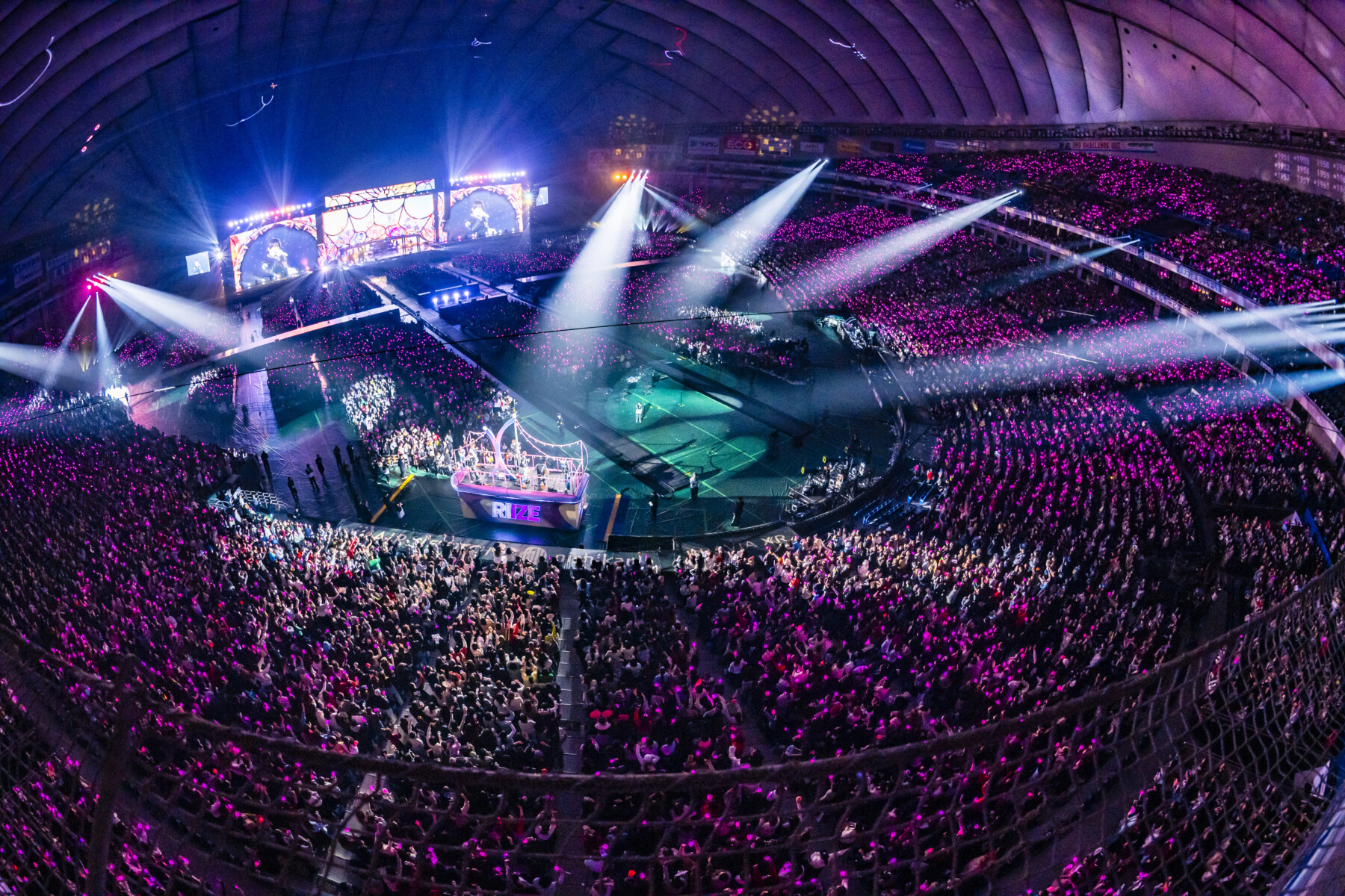 BRIIZEからの「RIIZE!RIIZE!」の声に応えて、アンコールへ。それぞれメンバーの名前が背中に書かれた特別仕様のRIIZEオフィシャルグッズの黒いスタジャン姿で登場!ピンクとブルーの可愛らしい巨大フロートに乗って、客席に向かってサイン入りのフリスビーやボールを次々と投げ、3曲を通してBRIIZEに愛と感謝の思いを伝えるかのように東京ドームを一周した。
