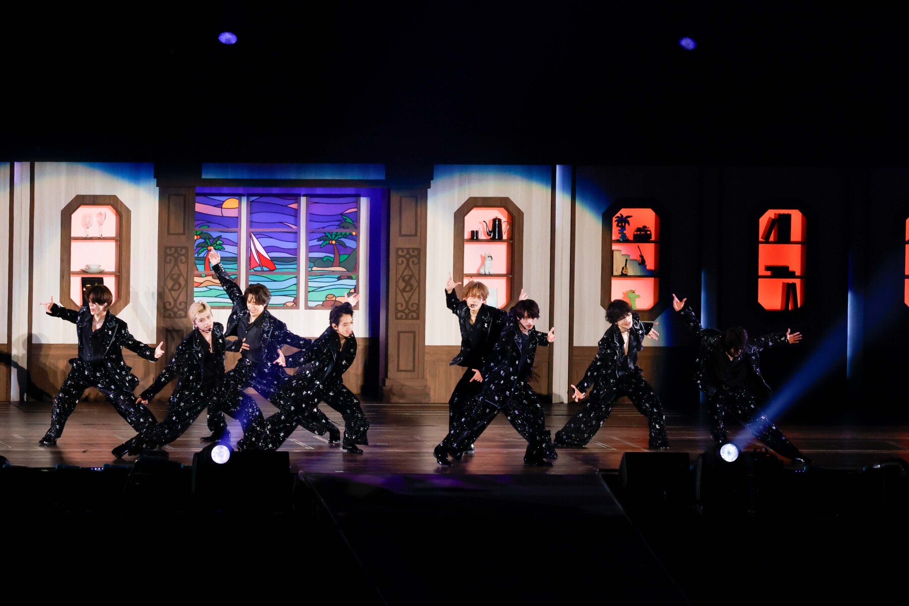 後半を彩ったのは、モードな黒衣装。マットな光沢感のある黒に、星屑のようなきらめきと「T」と「L」を組み合わせた、timeleszのモノグラムが全面に散りばめられていて、時に眩しいほどの輝きを放っている。終盤には、Sexy Zoneの歴史を感じるMash upメドレーや彼らにとって大切な楽曲である「RUN」も披露。アリーナツアー時よりも各段に、この大人っぽい黒衣装がしっくりとフィットしていて、メンバー全員によく似合うようになっていた。これもまた一つの成長の証なのかもしれない。