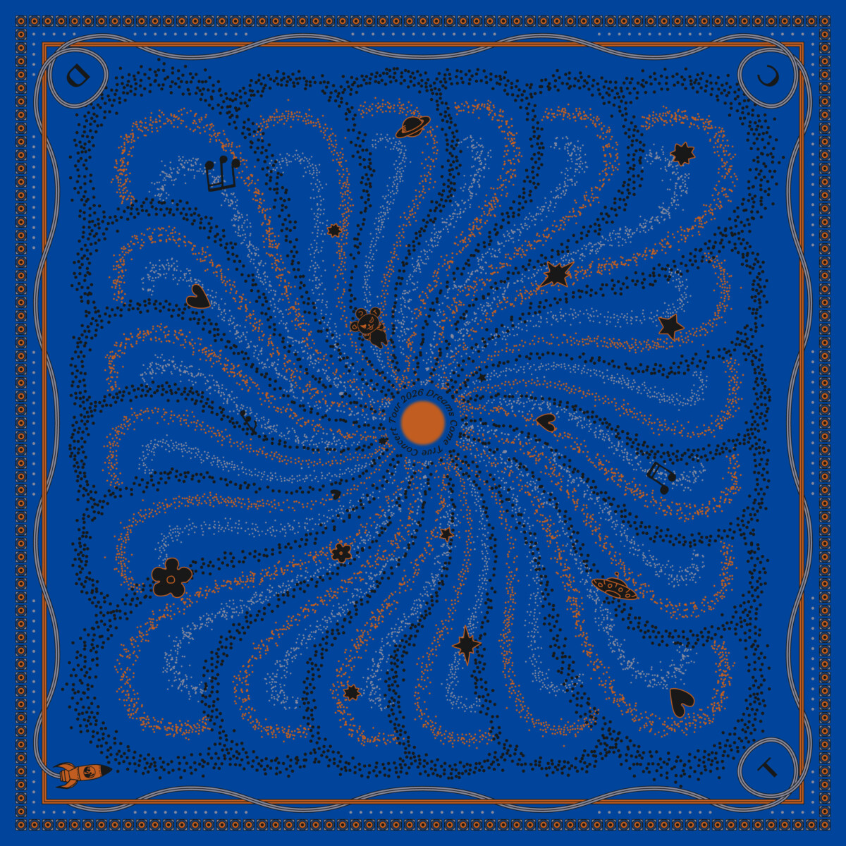 テキスタイルは、アルバムのキーワードである“ブラックホール”を着想源に、無限の光が放たれるさまをイメージ。テキスタイルは糸の選定から共同で行い、オリジナルで制作された。