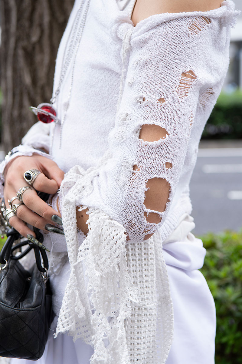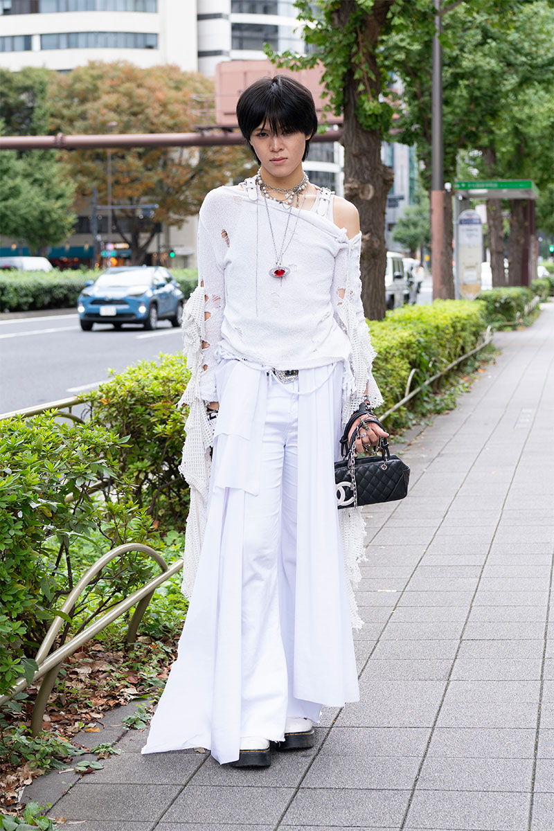 黒いお洋服を着てくる人が多いかと思ったので、あえてオールホワイトでおばけ風のコーディネートを意識しました。