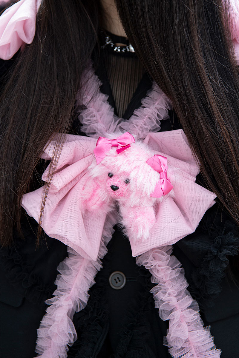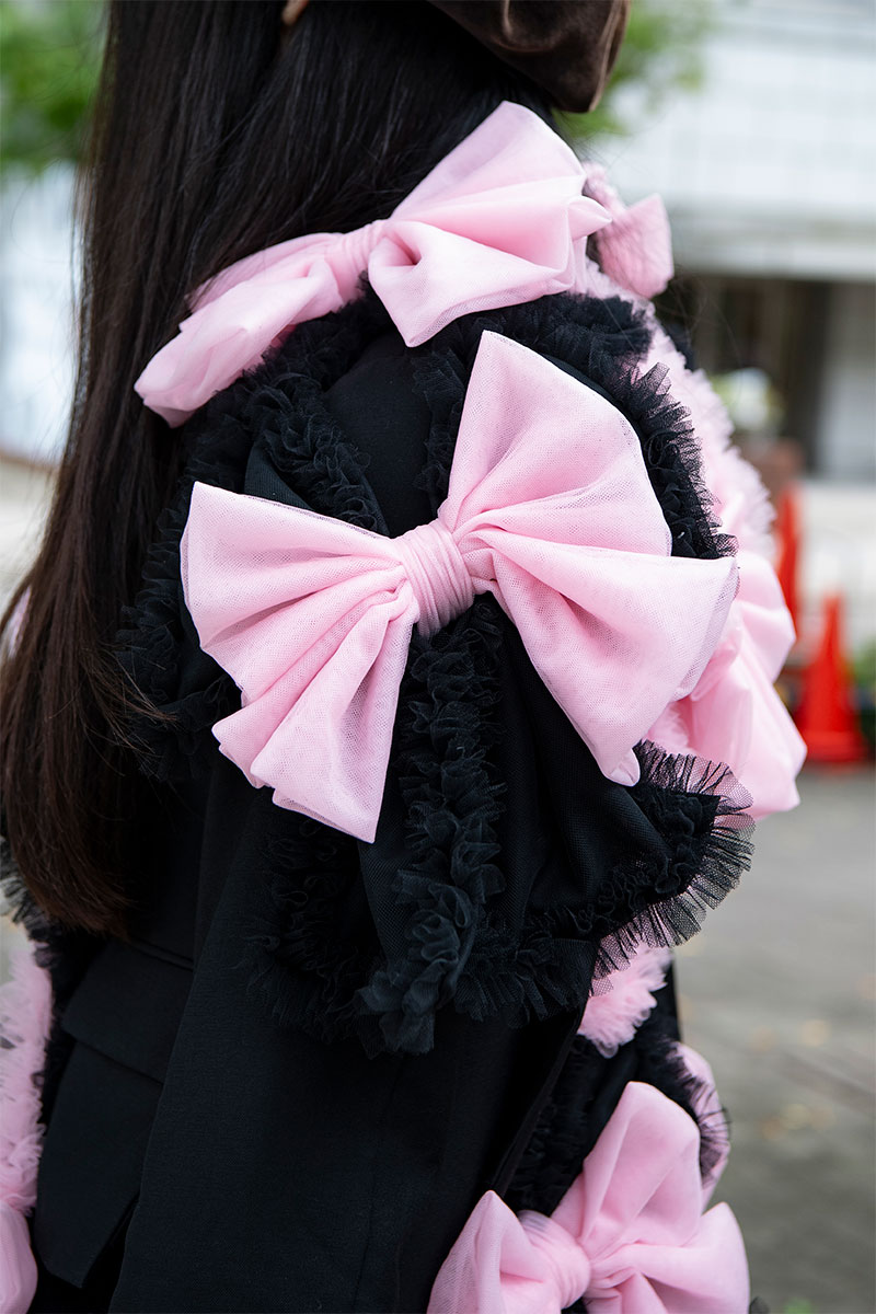 自作のリボンドレスを主役に、かわいさと強さの融合を意識しました。