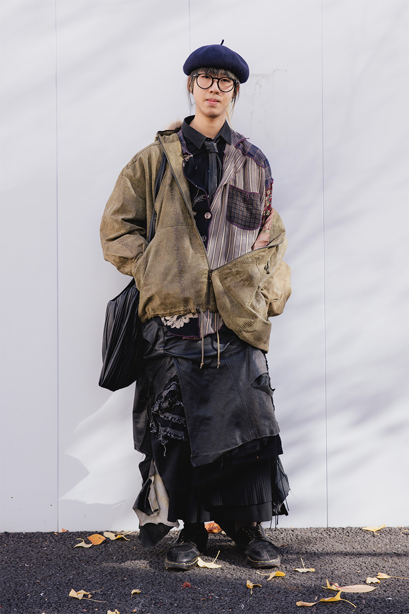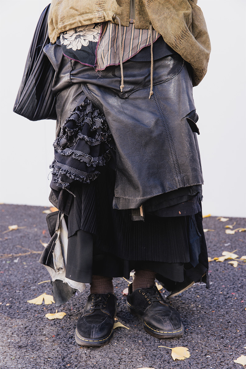 スカートをレイヤードしているところです。一番上に履いたスカートは自分でリメイクしたものです。