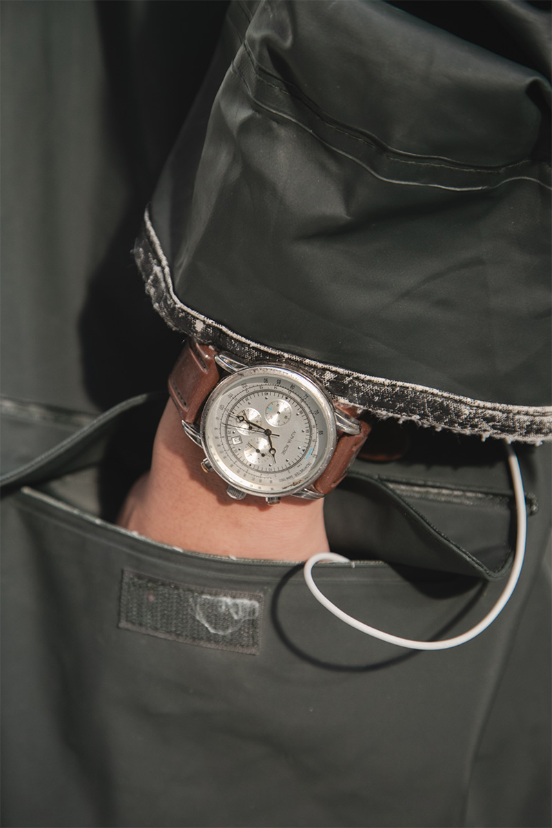 ビンテージのALPHA ROSEの腕時計もポイントです。