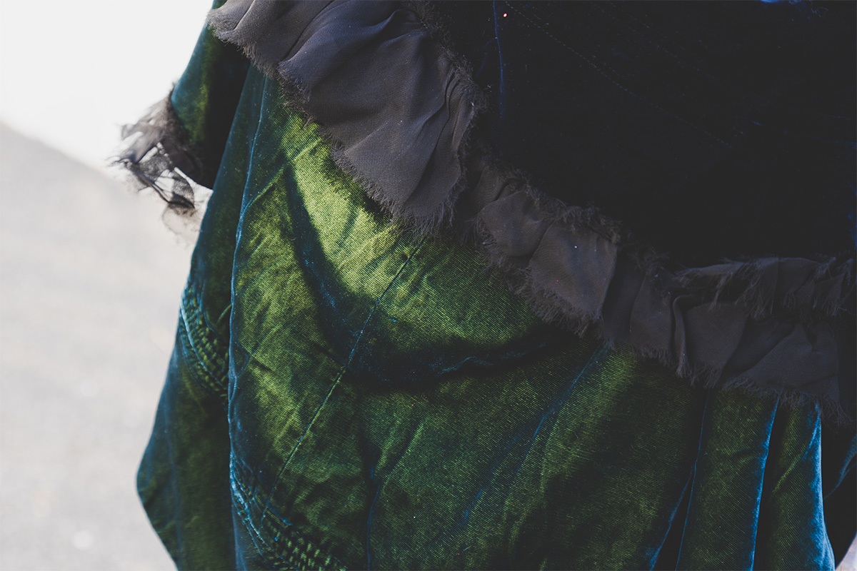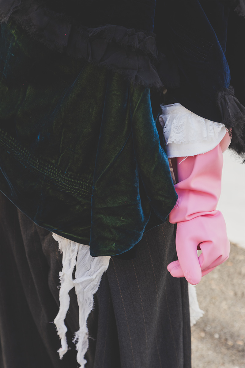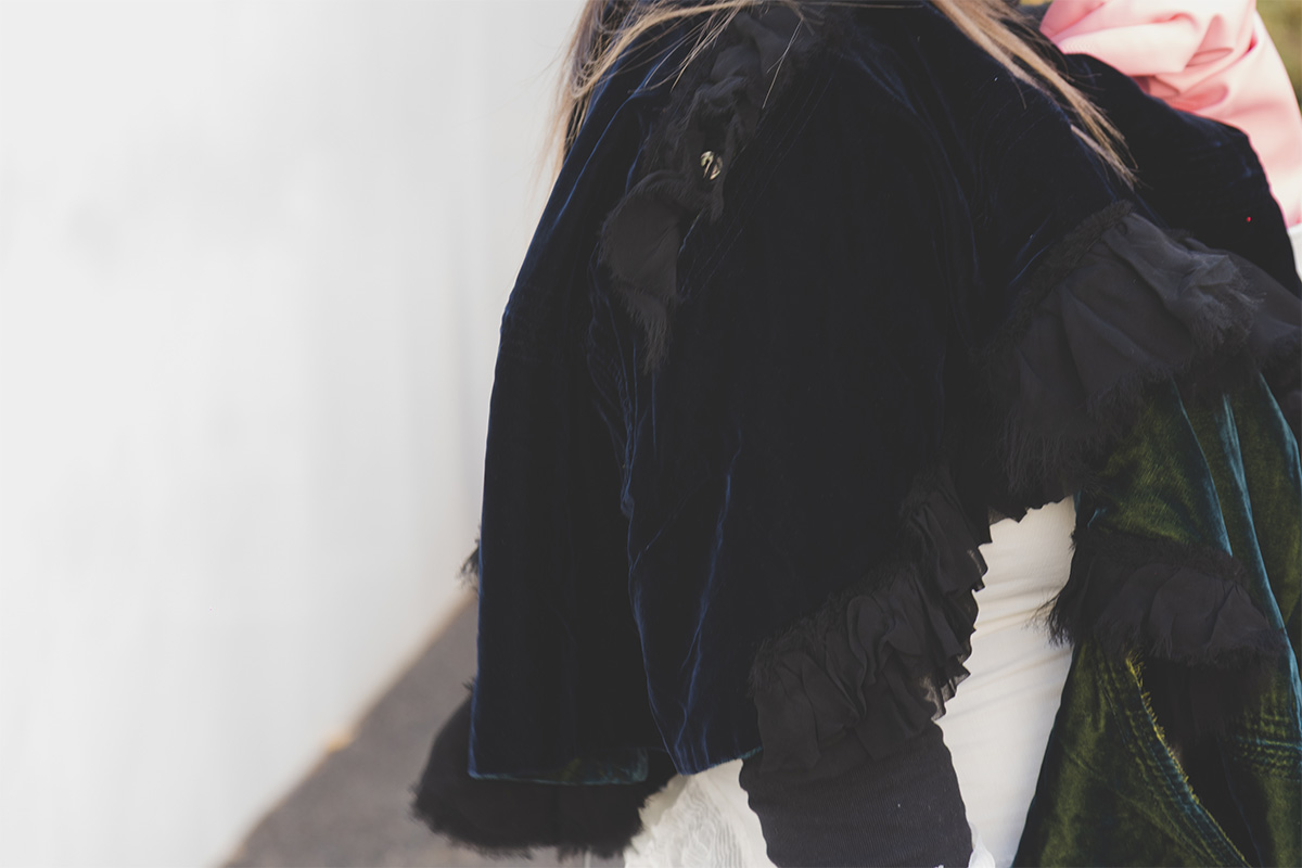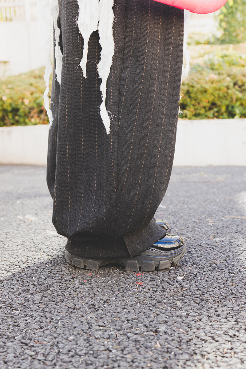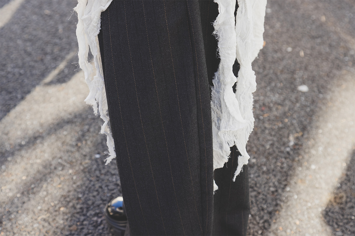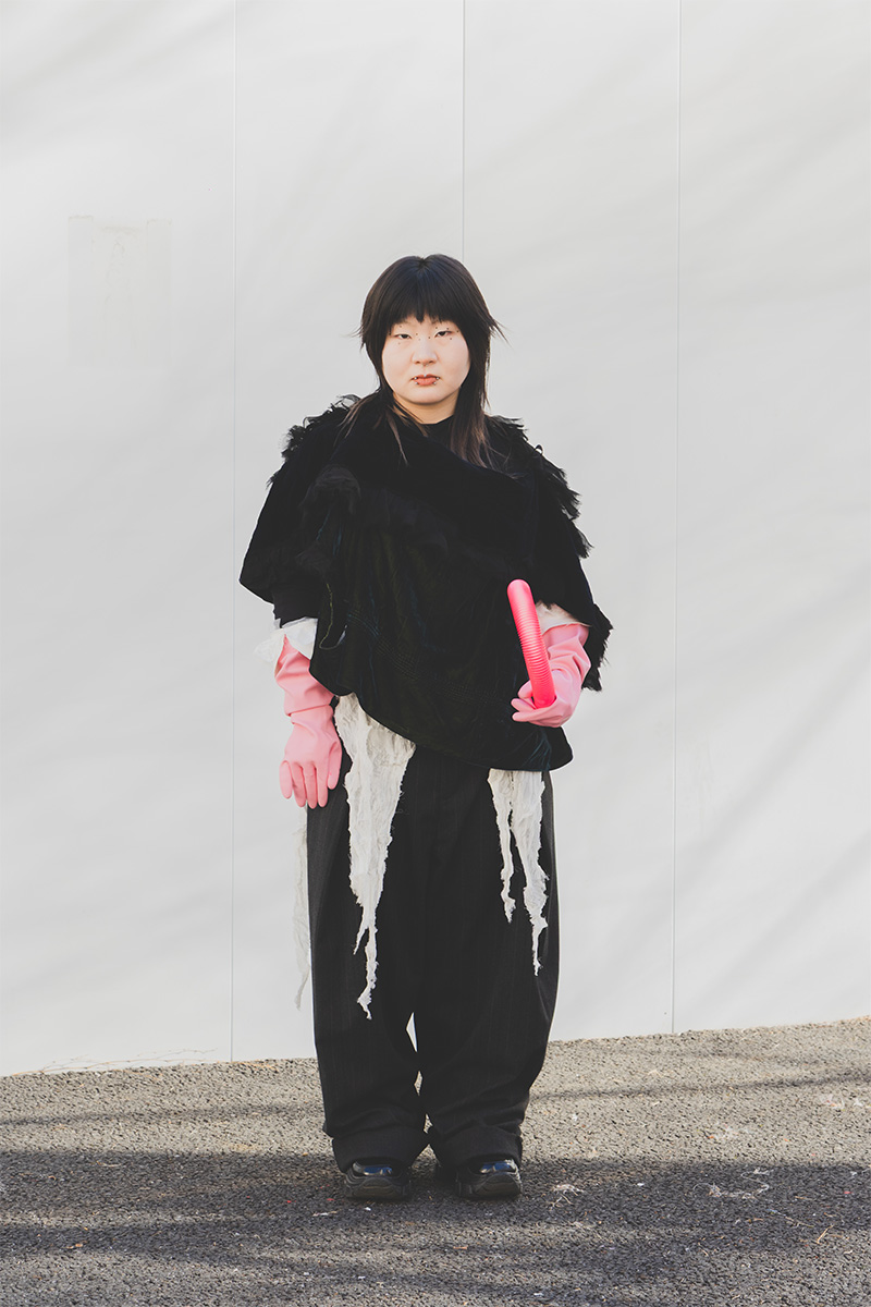 トップス:comme des garcons、(ベロアのトップの下にレイヤードしたホワイトのもの)自作