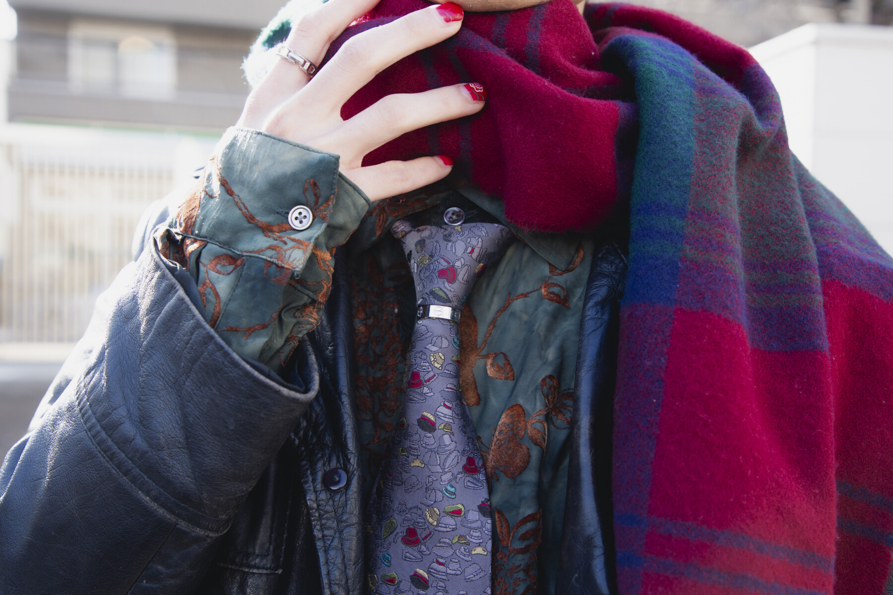 茶系で揃えたスタイリングと、バラのネイル、ネクタイのリングです!