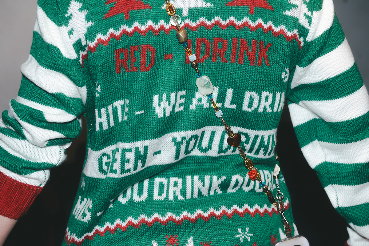 ダサセーターの入手先:メルカリ(的のボールのみ100均で購入)、古着屋