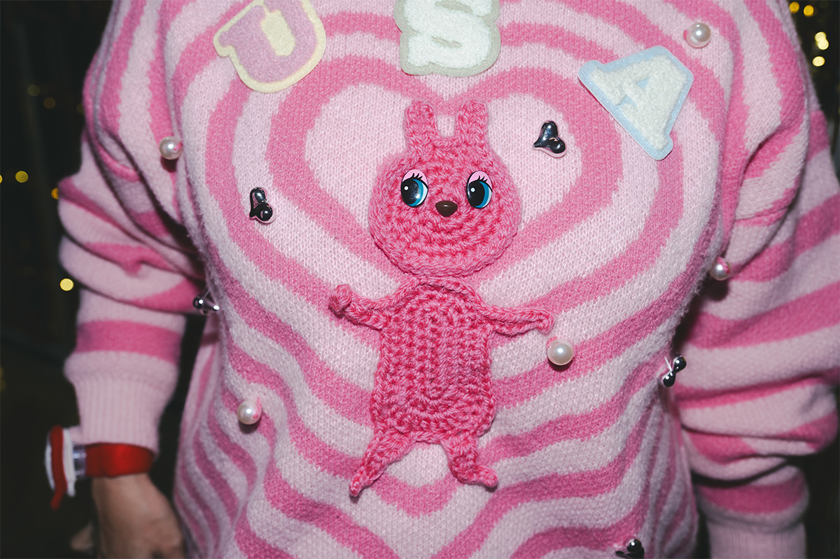 氏名:ダサヶ谷三姉妹さん (右から、saecoeda(末っ子)、ボブ子(妹)、かすみ(姉))Instagram:@saecoeda、@bobuko82ダサセーターの入手先:SHEINで購入したセーターを各自でアレンジsecoedaさん:100均やファンシーショップで買ったものを縫い付けボブ子さん:背中のステッチやハートのモチーフ、ウサギは自作かすみさん:ハートやぬいぐるみなど、飾りはすべて自作 ADのあとに記事が続きます ADのあとに記事が続きます Photographs:伊藤 翼(B.P.B.) ▷その他のスナップはこちら 合わせてチェック! 年末年始に大活躍! 簡単おしゃれなおもてなしレシピ3選 千賀健永さん(Kis-My-Ft2)が登壇!「TOKYO BEAUTY WEEK」プロジェクト発表イベントの様子をお届け。メイキングムービーも。 KIDILL(キディル)の末安弘明と中央町戦術工芸が鼎談『抗い続けるパンクのスピリット、新しい価値観と混ざり合うことで進化し続ける』 ファッションの分野で篠原ともえが参加 正倉院初の体感型展覧会 【バックステージ取材】“楽しむ”を根底に3シーズンを共にするVIVIANOチームにフォーカス 【BUNKA DAILY SNAP】福山 なな子さん