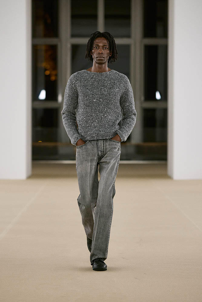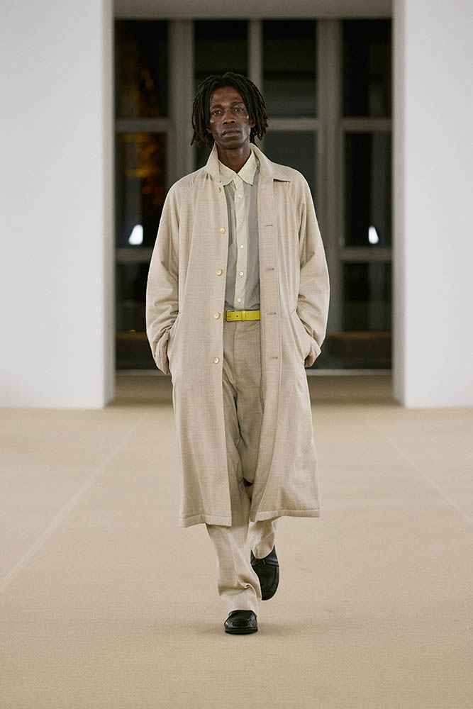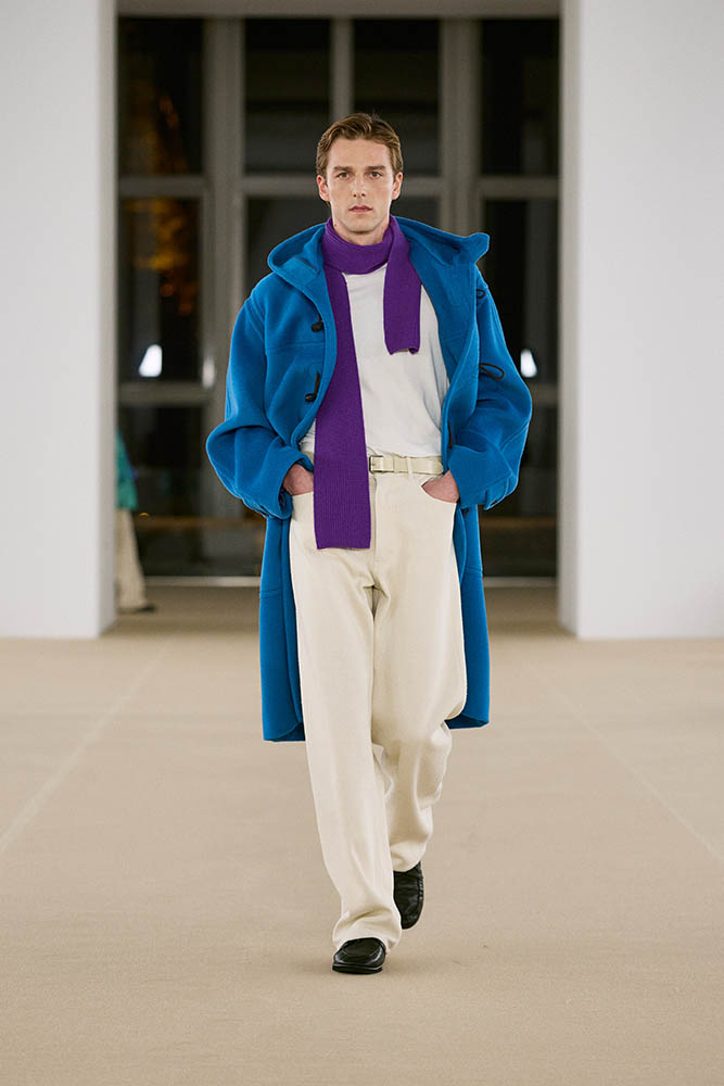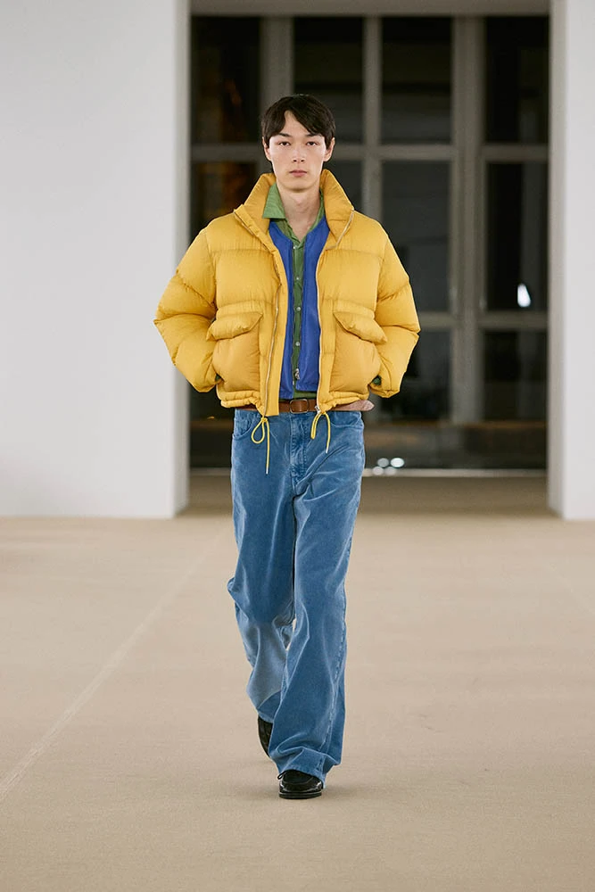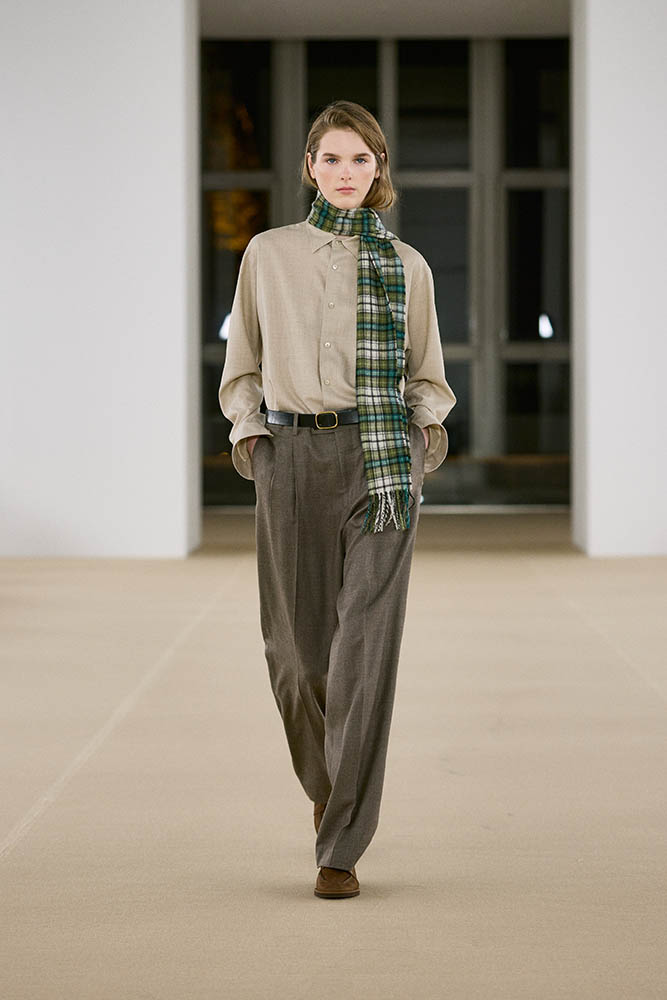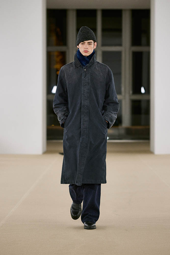 柔らかなカーフスキン、カシミヤのコーデュロイ、ウールのヘリンボーンパイルなど、見るからに肌触りがよさそうな素材を贅沢に使用。重厚な防寒着に軽やかなアイテムを組み合わせているのもポイントで、チェック柄がアクセントに効いています。