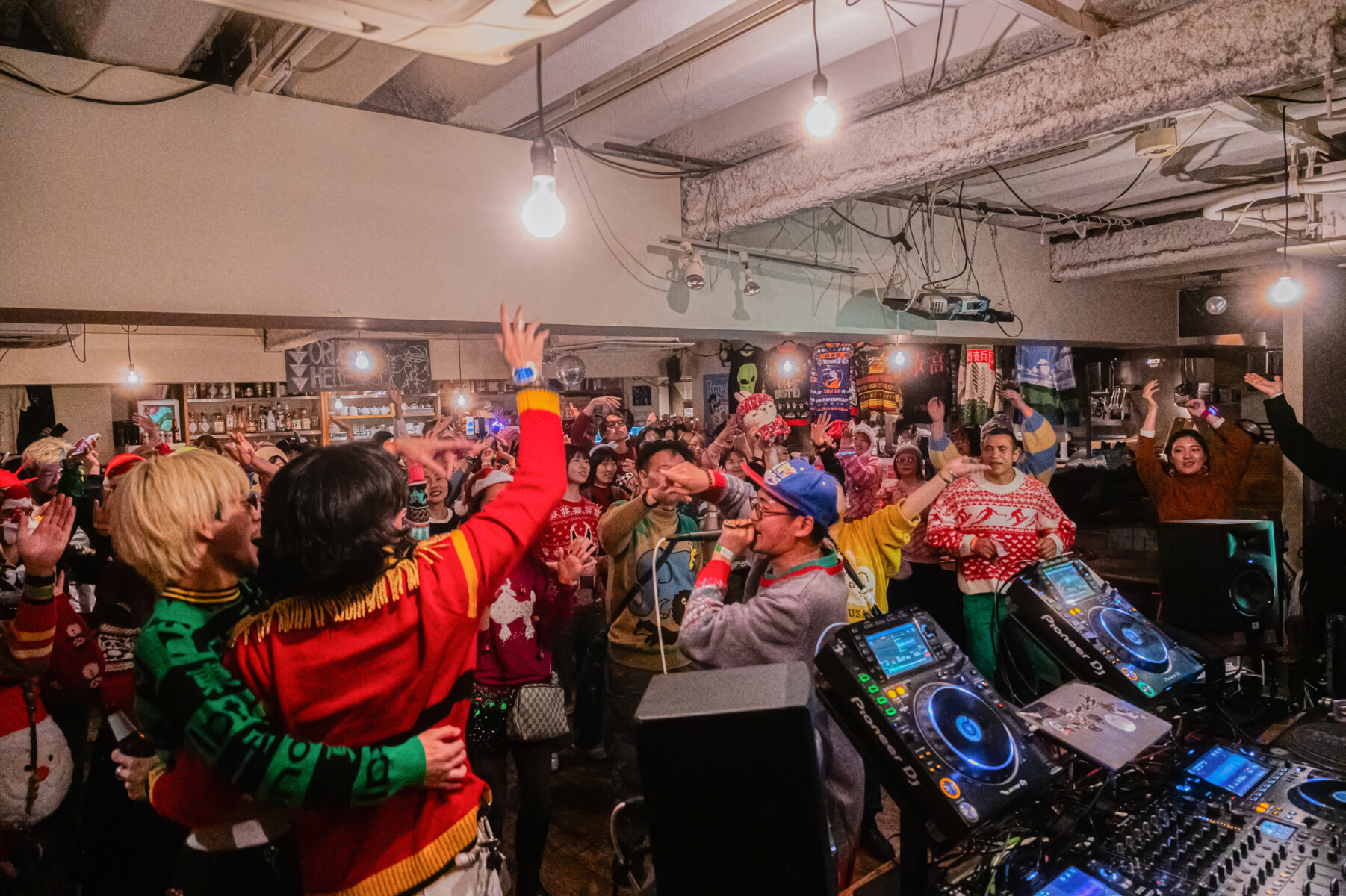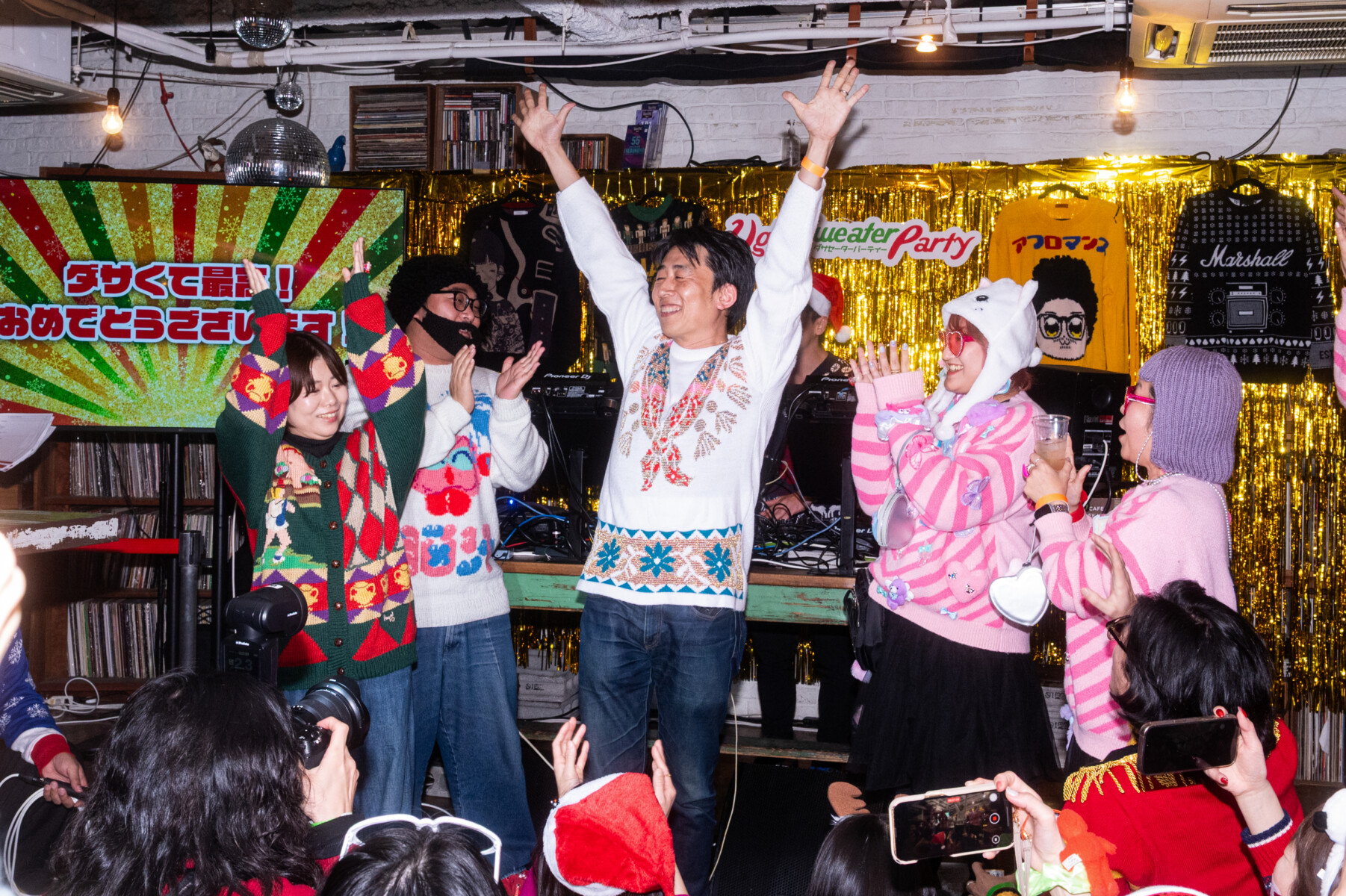 クリスマスソングに合わせて大盛り上がりの「ダサセーターパーティ」会場