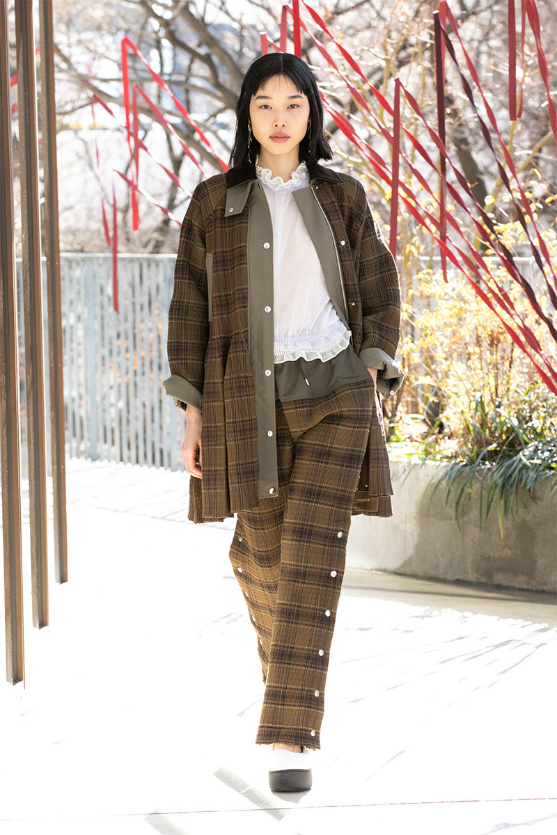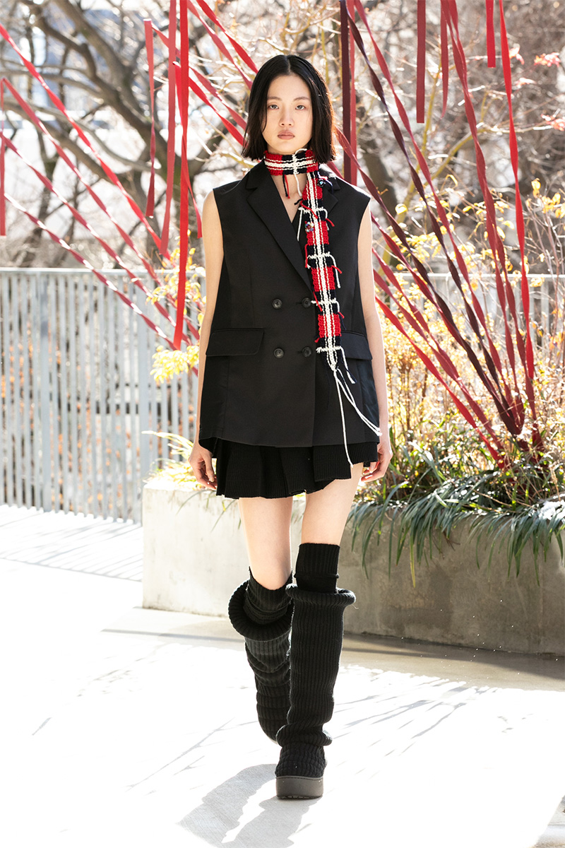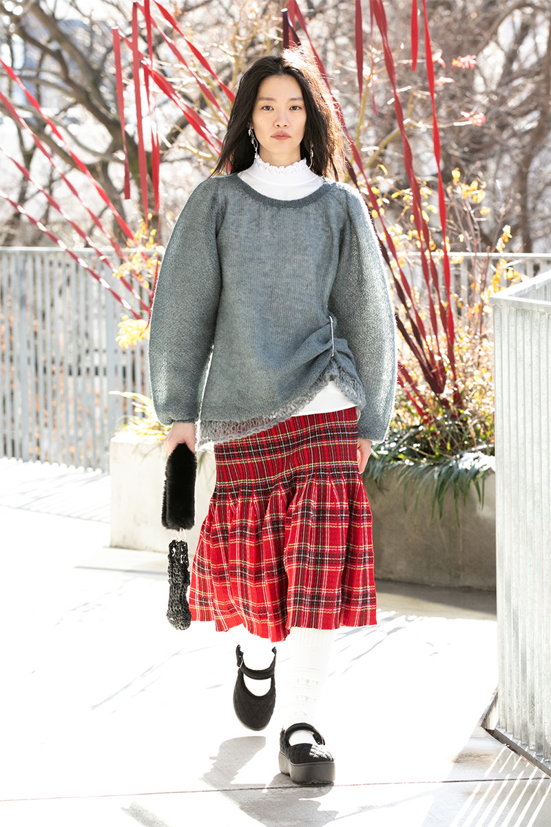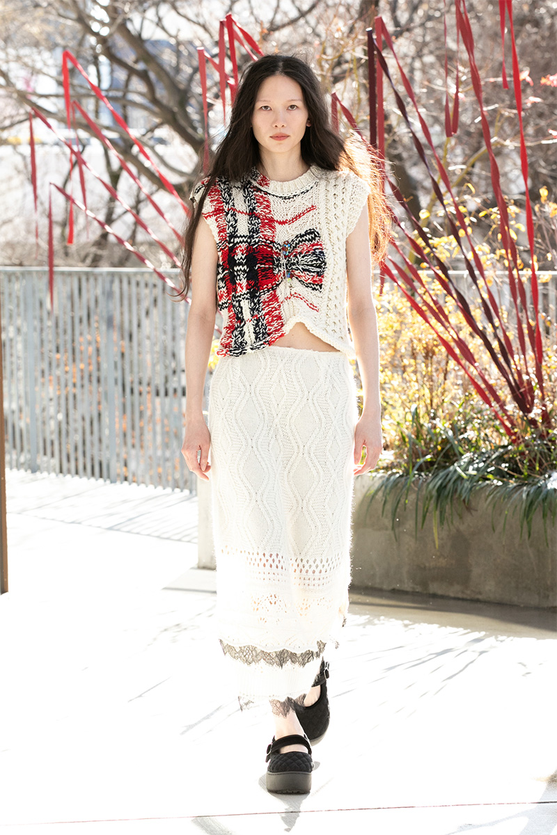 甘さを控えたロマンティックなニットのルック。ストレートなパンツをスタイリングした少しボーイッシュなリック。すべてのルックには丸みを帯びたSUBUとのコラボレーションの靴がコーディネートされていた。