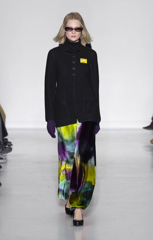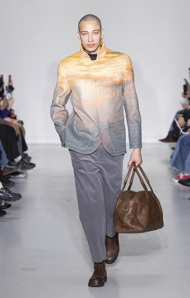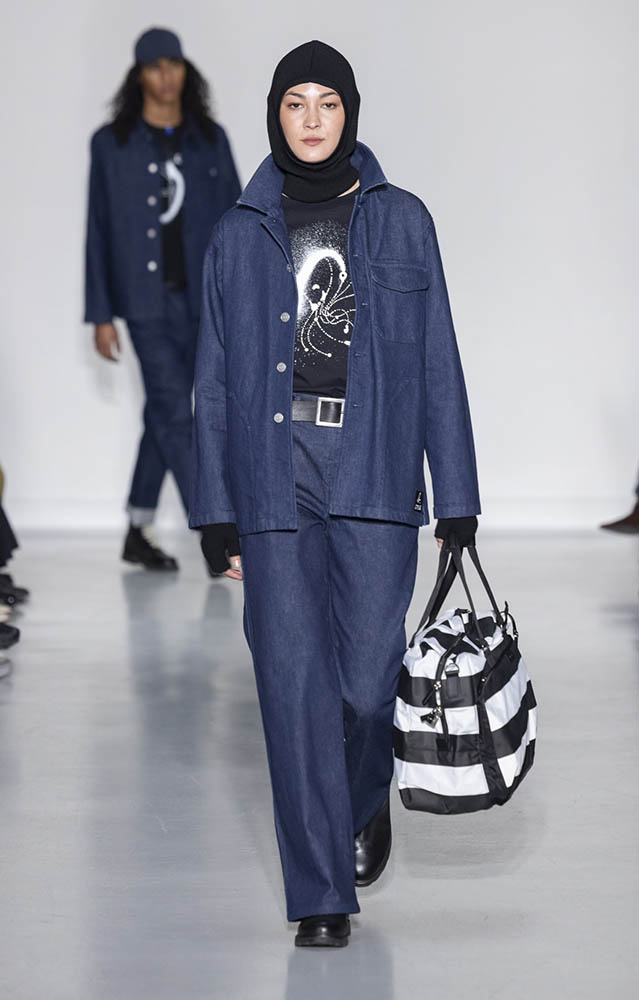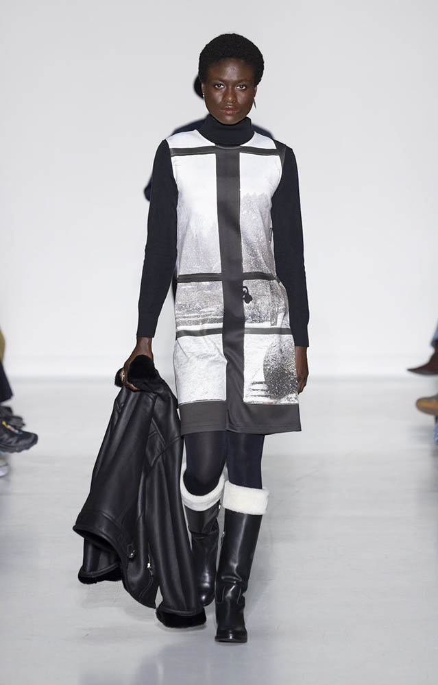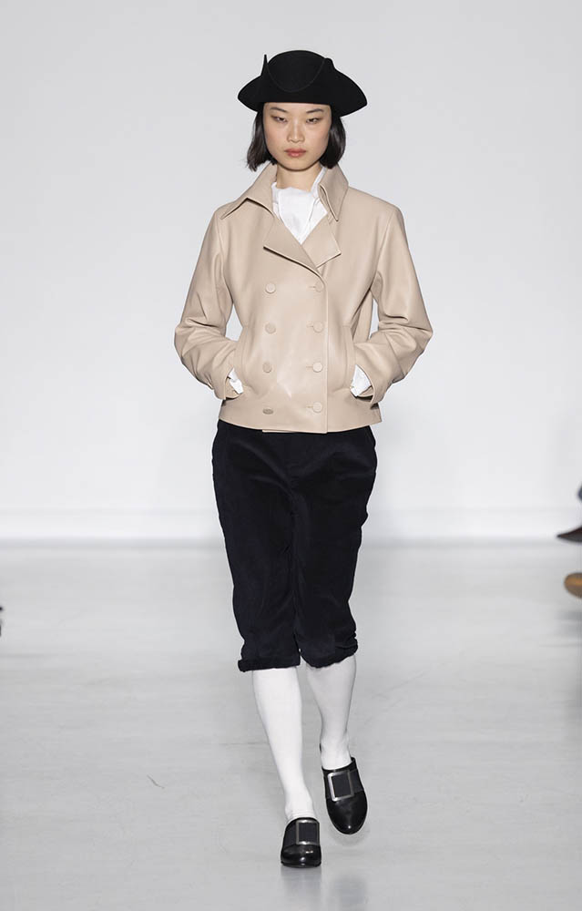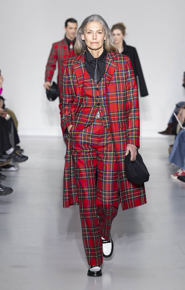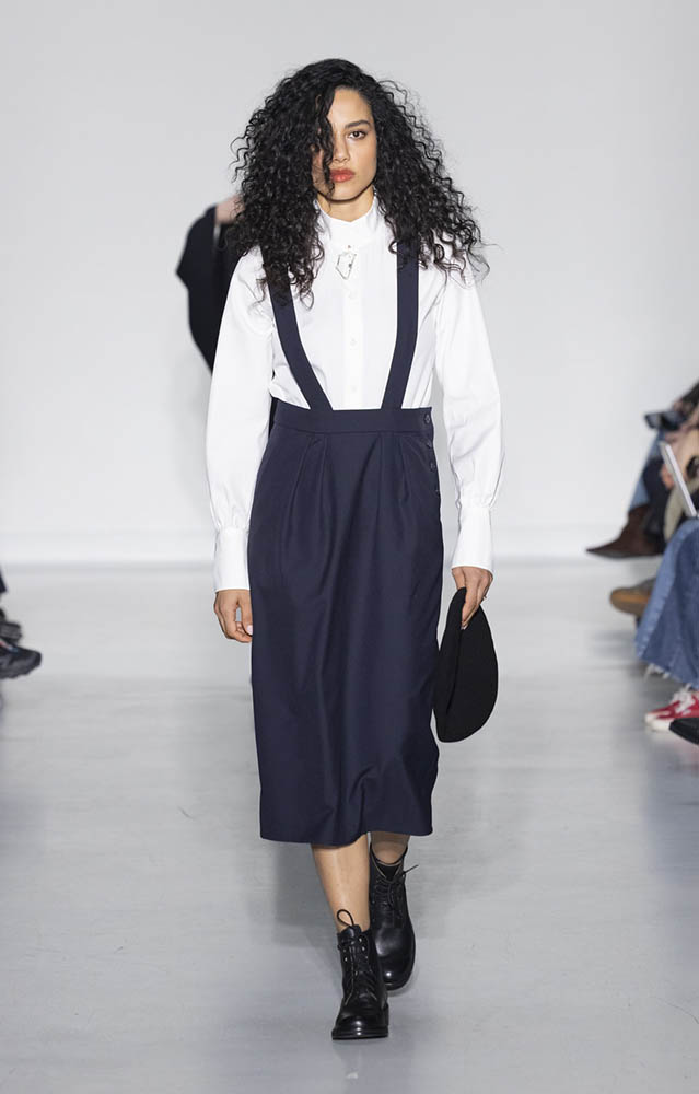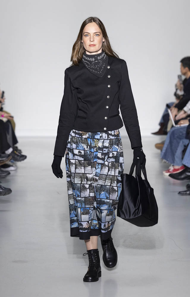 パリの本社で開催されたショーでは、スクールユニフォームを思わせるルックが多数展開され、ランドセルを持ったモデルも登場。定番のボーダー、タータンチェック、雪景色の写真のプリントが目を引くコレクションです。