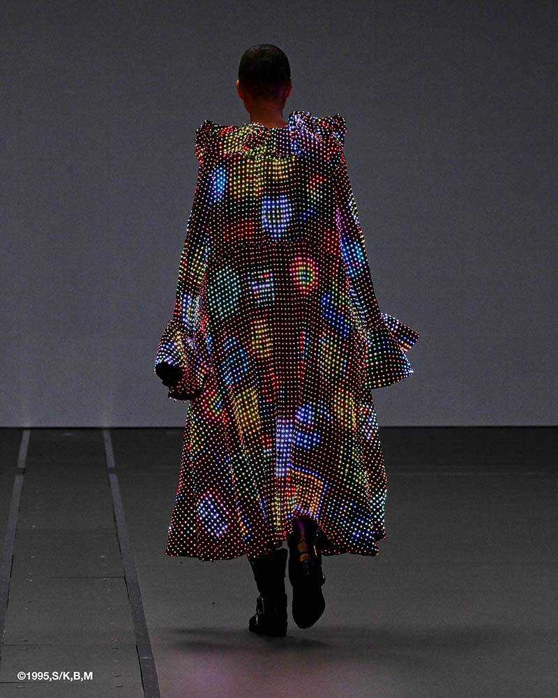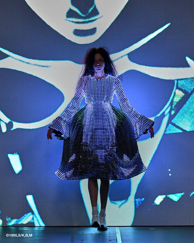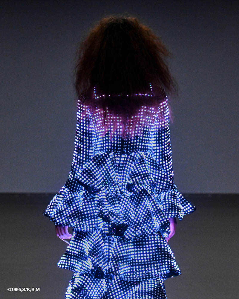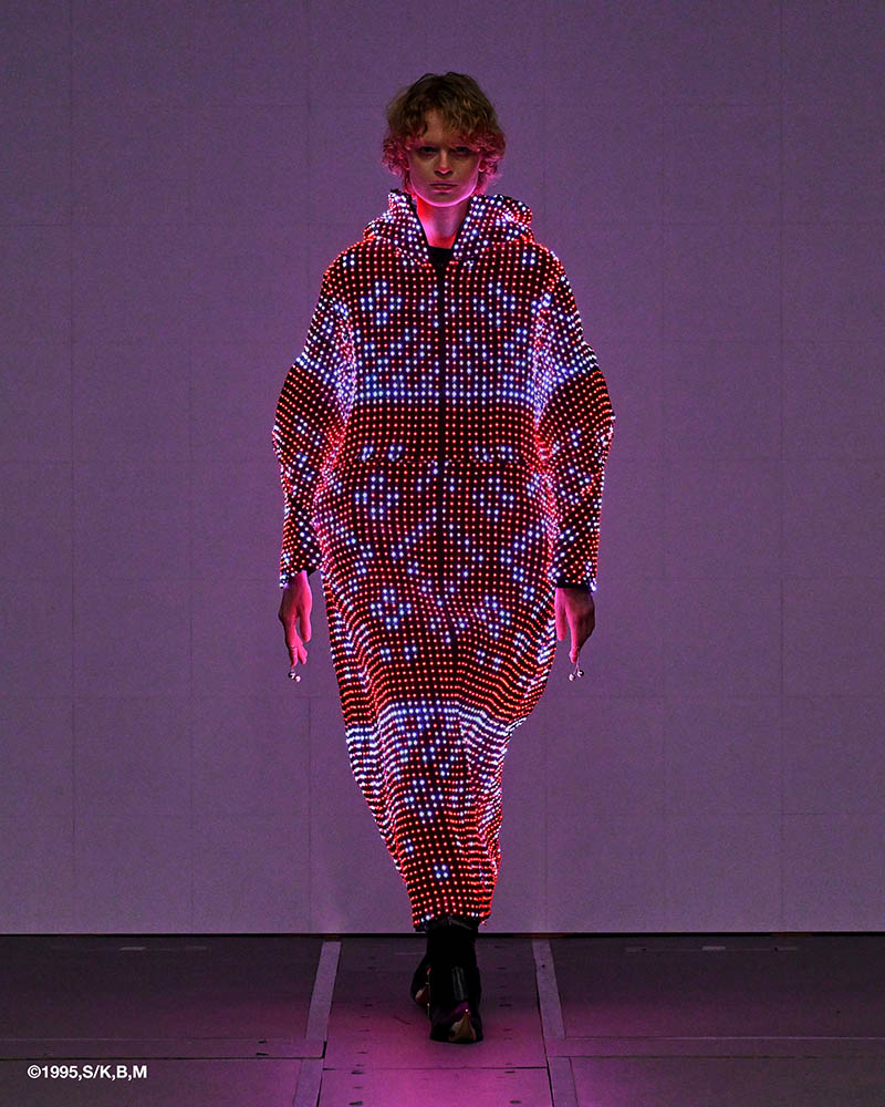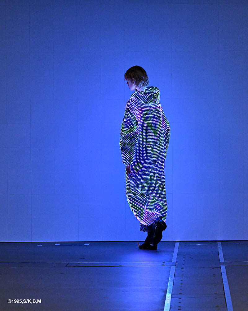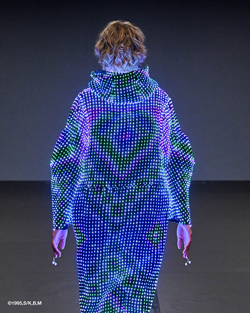 マンガ『攻殻機動隊』で描かれた、身体を不可視にする光学迷彩の概念を、現実の衣服として実装する試みです。