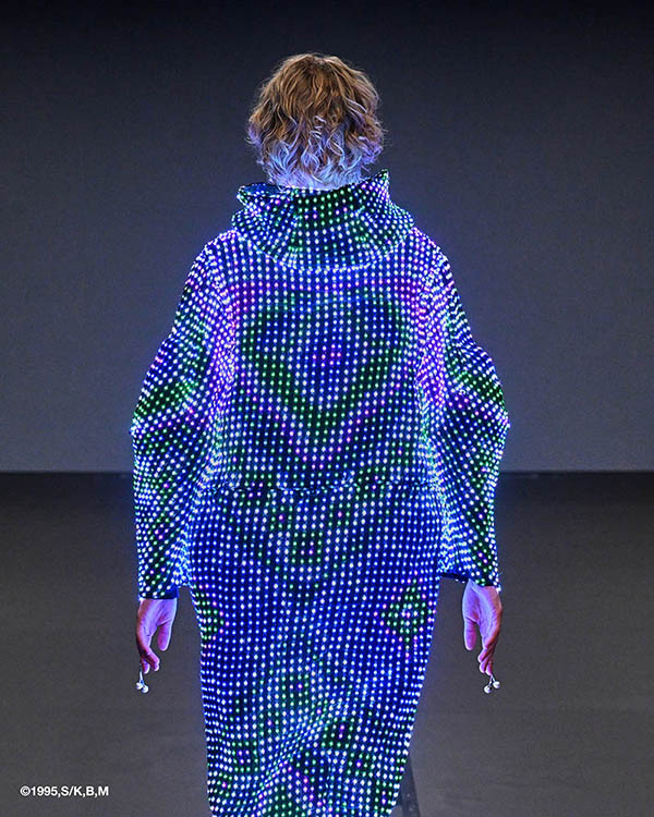 クライマックスでは、アニメ作品で描かれる光学迷彩の概念を投影。LED技術を組み込んだ服と周囲の映像が同期することで身体の輪郭が曖昧になり、まるで人が消えてしまったかのような驚きの視覚効果を生み出しました。