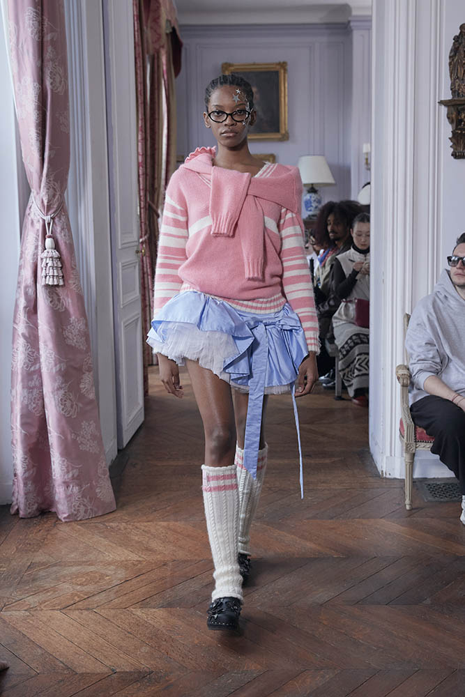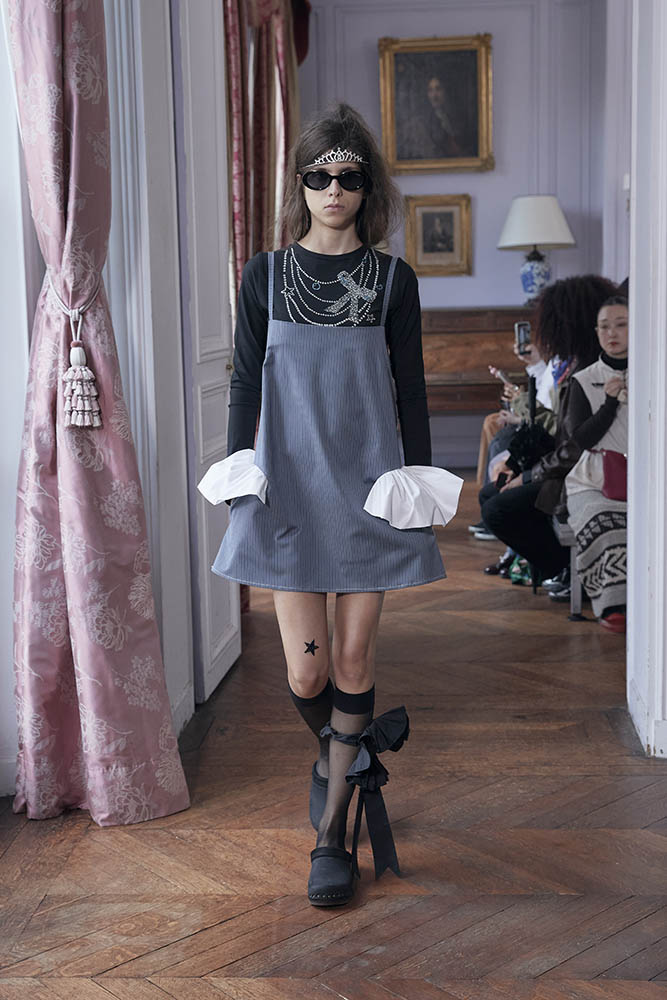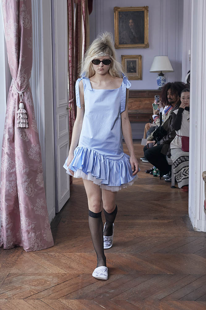 『プリティ・プリンセス』や『セックス・アンド・ザ・シティ』の場面からも着想を得ていて、パジャマやランジェリーといったプライベートウェアを日常着として再解釈。星、リボン、グリッターの装飾をちりばめ、グランジとロマンティックが共存する現代的なヒロイン像を描いています。