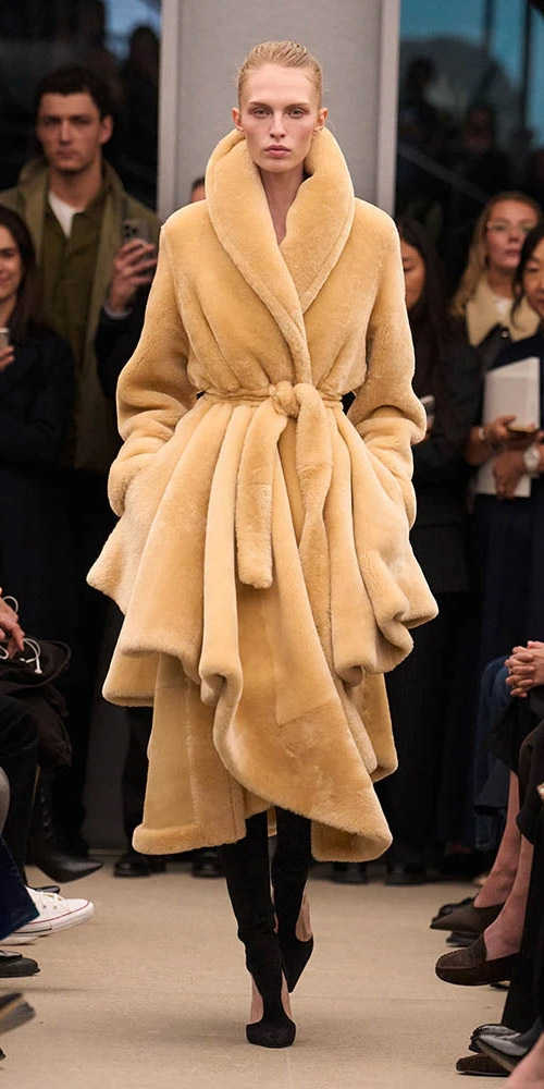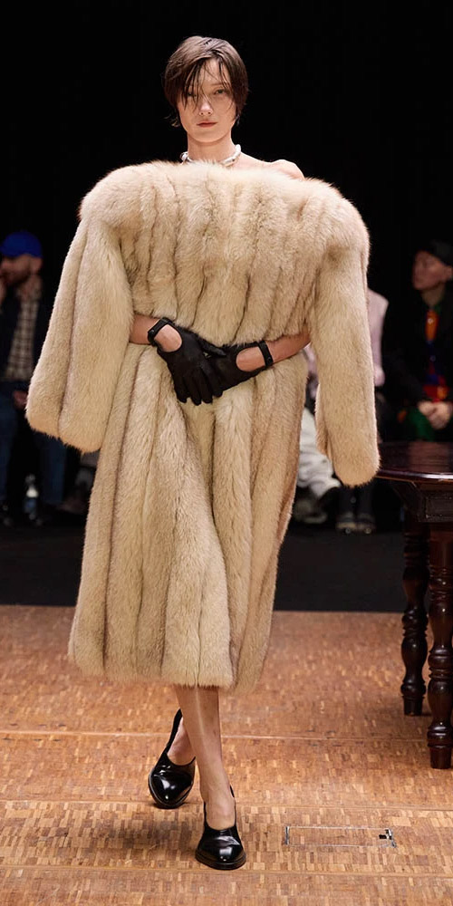 複数の価値観が併存し、単一のトレンドが弱まる中、明確に浮上した素材はファーとシアリングだった。リアルファー、フェイク、リサイクルと、その種類は様々だが、いずれも防寒性に優れ、視覚的なインパクトもある。機能性と装飾性を兼ね備えたこれらの素材は、身体を包み込むコートから小さなアクセサリーまでバリエイション豊かに展開され、今シーズンを彩った。