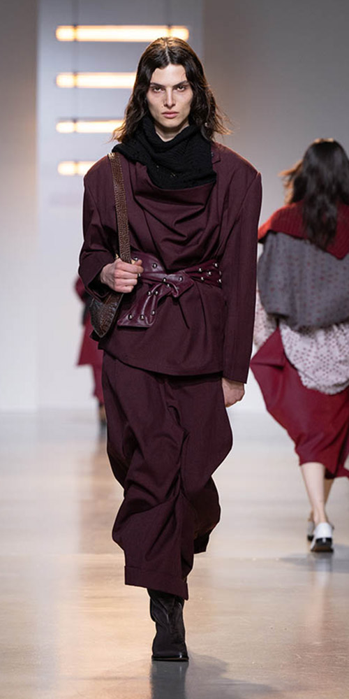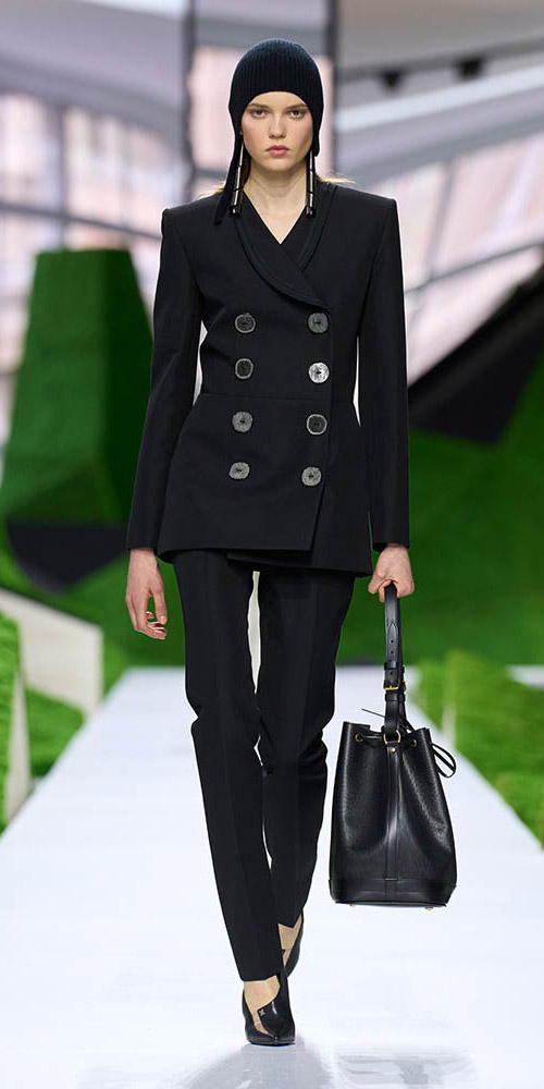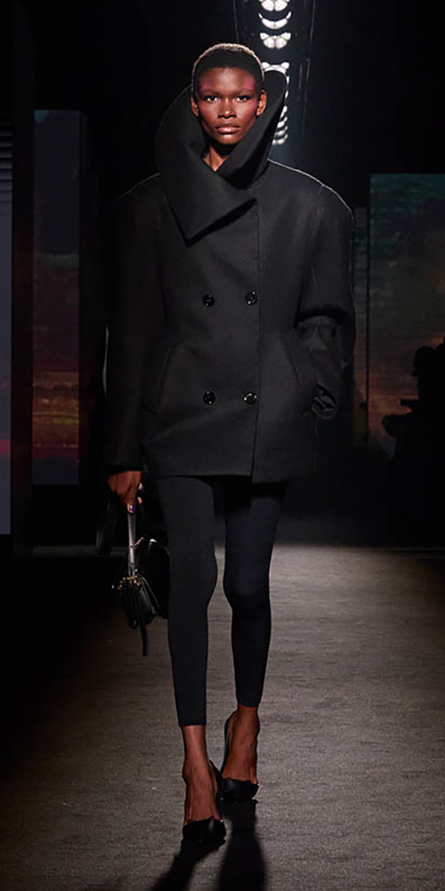 また、落ち着くかと思われていたパワーショルダーが引き続き登場した。特にワイドなスクエアショルダーが、コート、ジャケット、ドレスなどの幅広いアイテムで展開。ボクシーなシルエットを形成するが、中にはタイトなボディでメリハリを持たせたものもある。