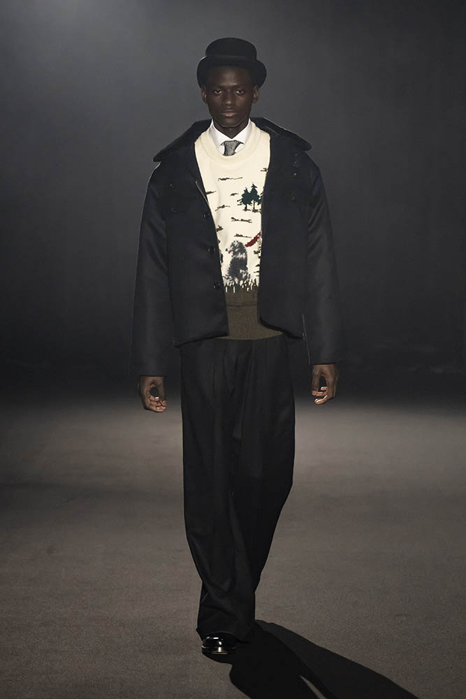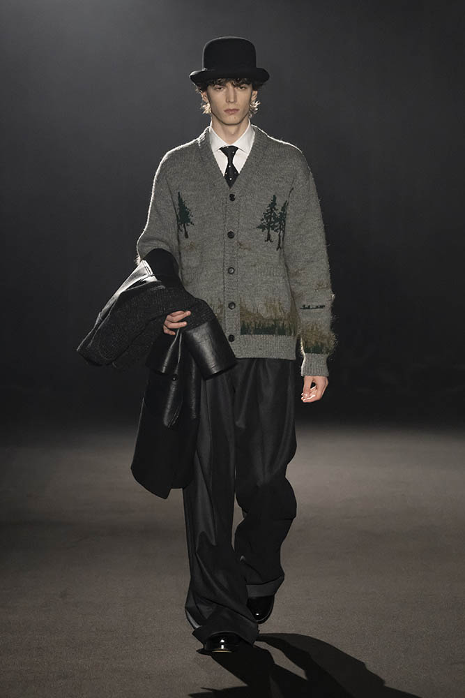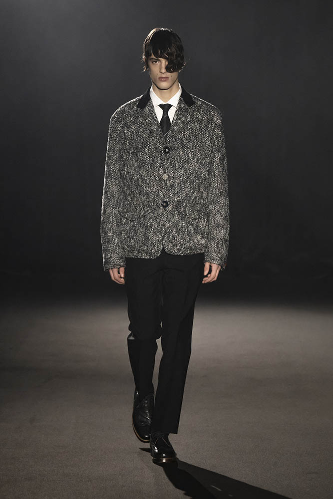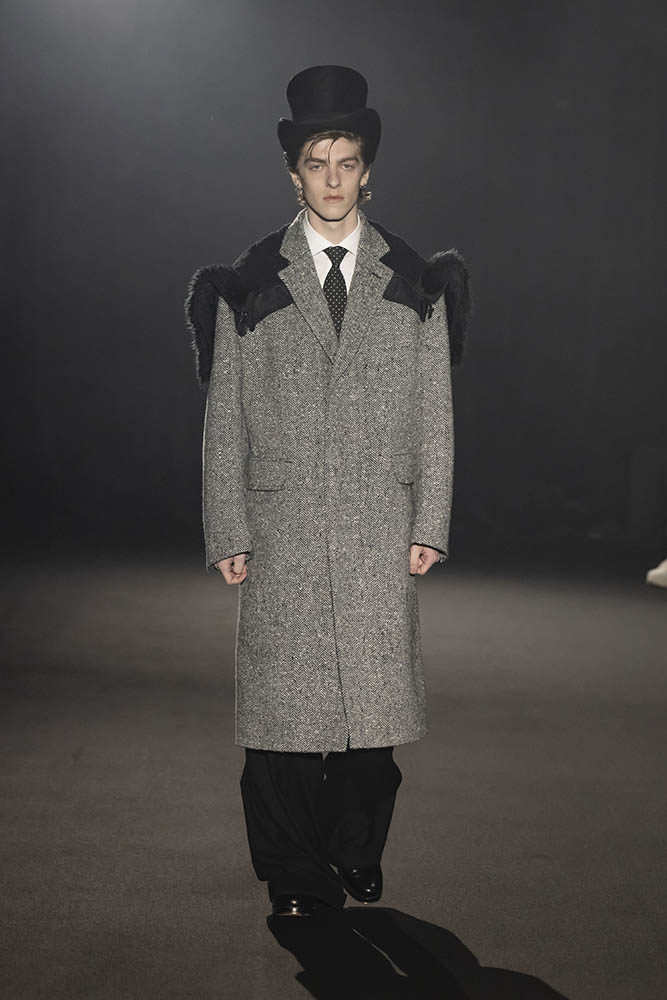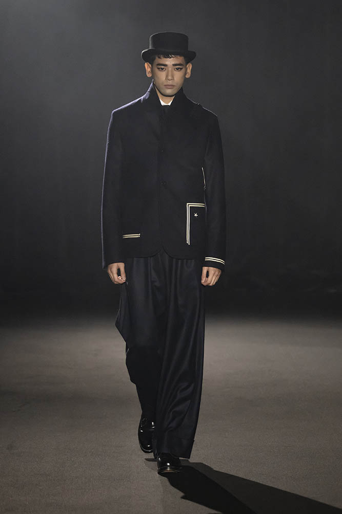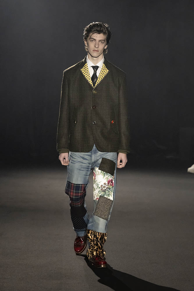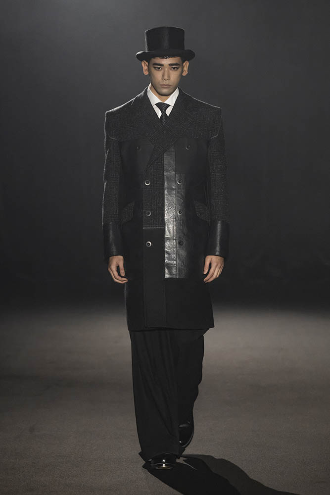 カチッとしたジャケットやコートにパッチワークの遊びを効かせるなど、このブランドらしい個性を随所に取り入れつつダンディなコレクションに仕上がっています。