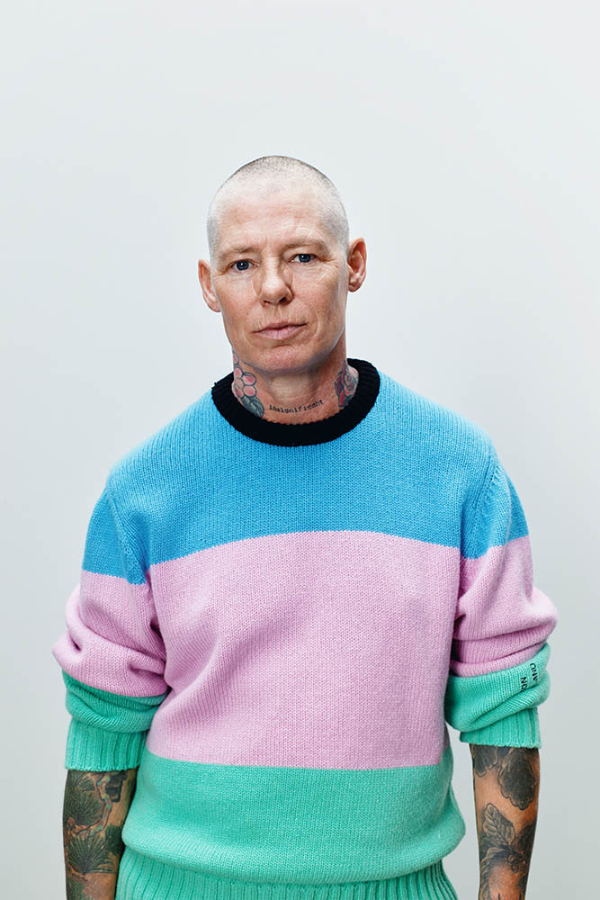 カラフルなスニーカーは、イタリアのスポーツブランド「ディアドラ」によるもの。