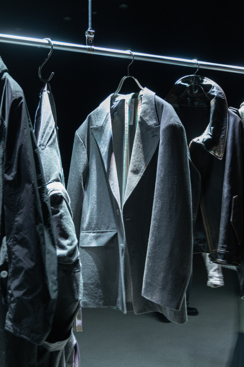 特定の場所でしか成立しない服ではなく、都市の風景に溶け込み、地下鉄でも自然に着られるような大衆性を持つこと。その一方で、触れた瞬間に職人の熱量が伝わる密度を宿すこと。相反する要素を内包した服作りは、工場との密接な協働によって支えられてきた。