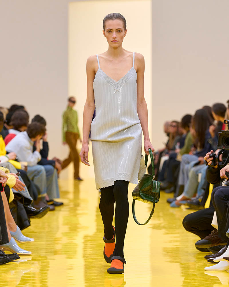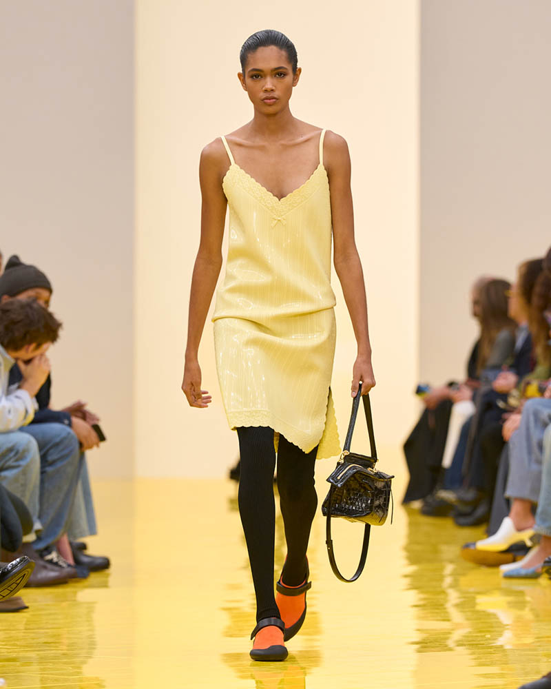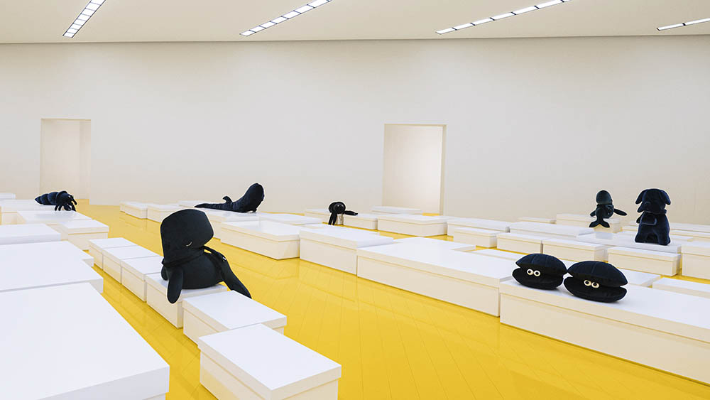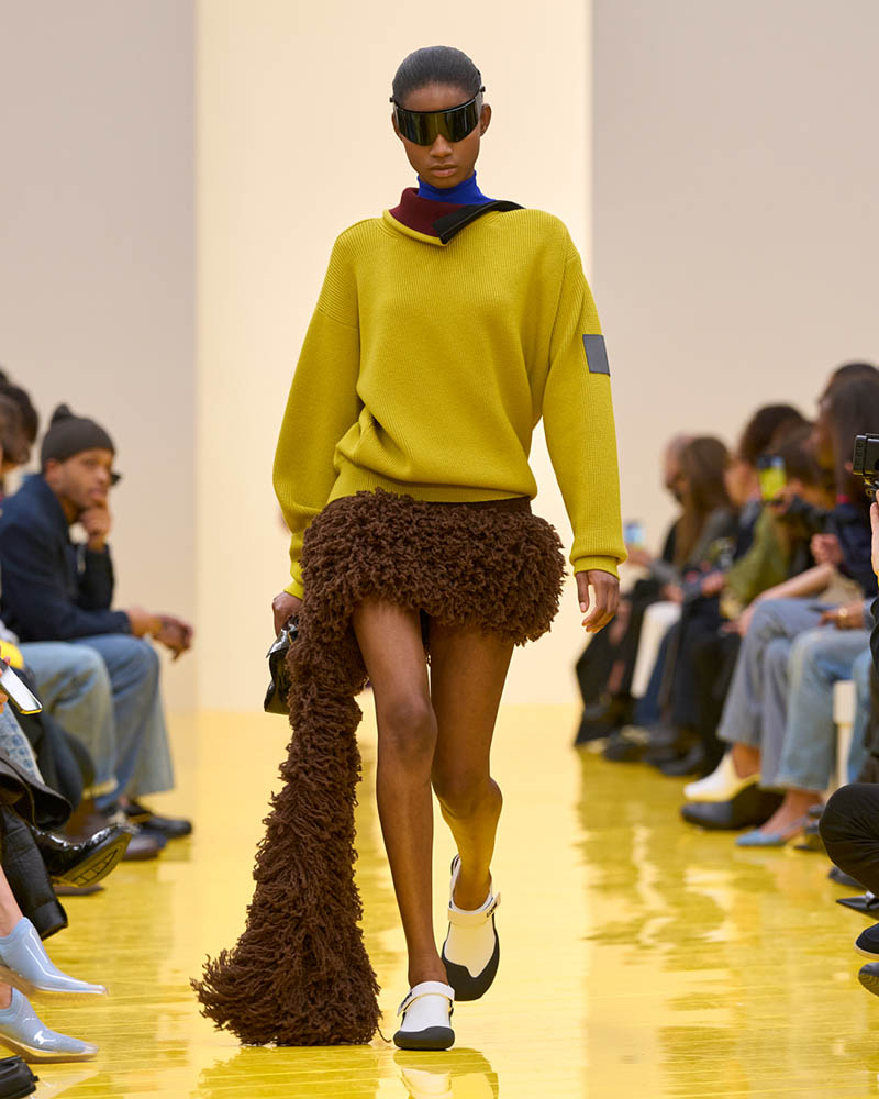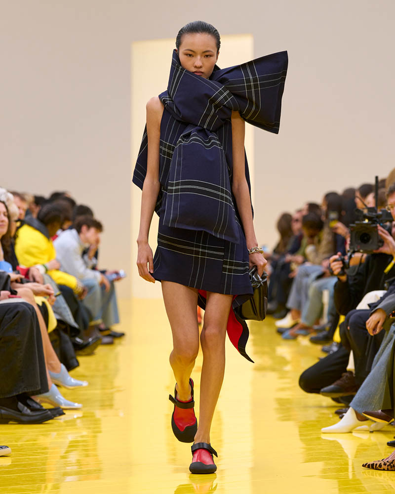 アーティストのコジマ・フォン・ボニンによる、犬や海の生物をかたどったぬいぐるみ作品が飾られた会場で、先シーズンに打ち出したコードをさらに広げたコレクションが披露されました。