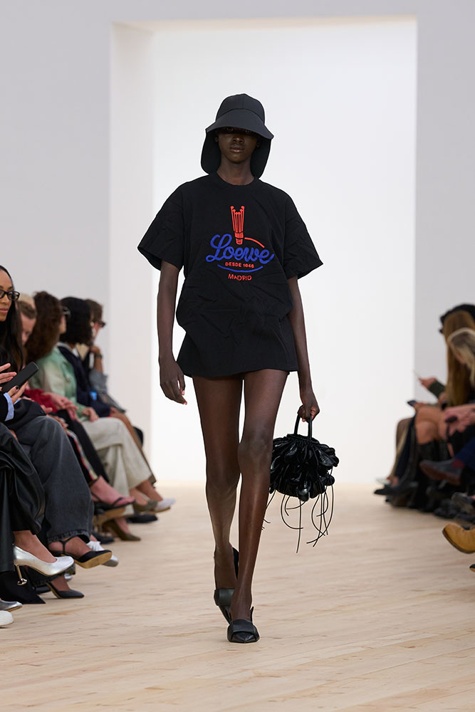 鮮烈な色とシャープなシルエットが続いたショーは、新生ロエベの幕開けを力強く印象づけるものとなりました。