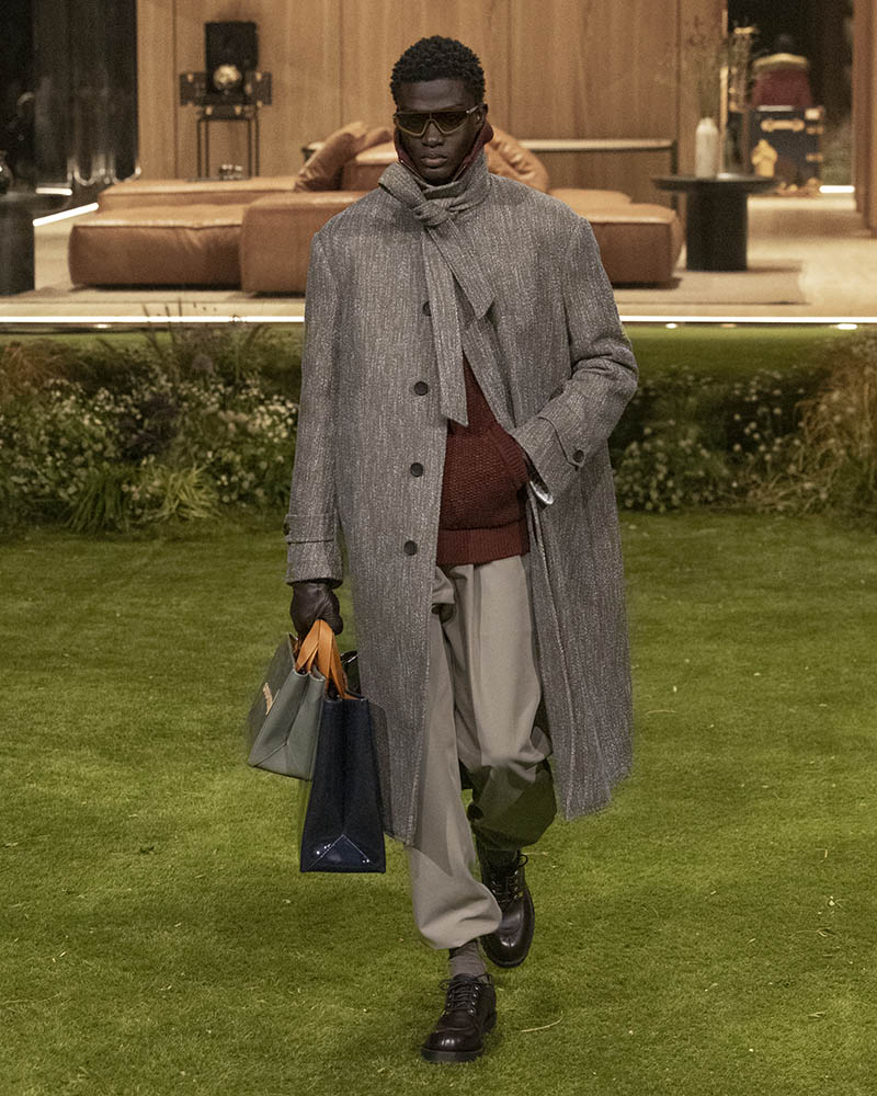 今シーズン、ファレルが試みたのは、すでに動き出している未来を再構築すること。消費されるためではなく持続することを前提に、機能性やサヴォアフェールに重点を置いたコレクションです。