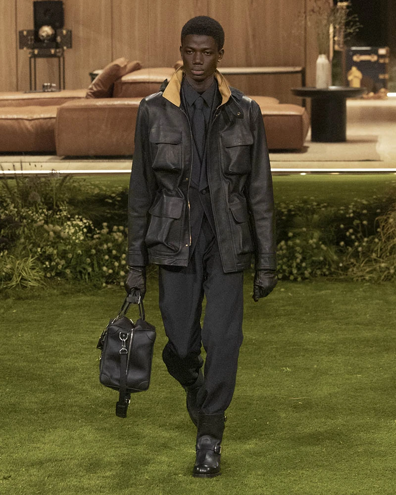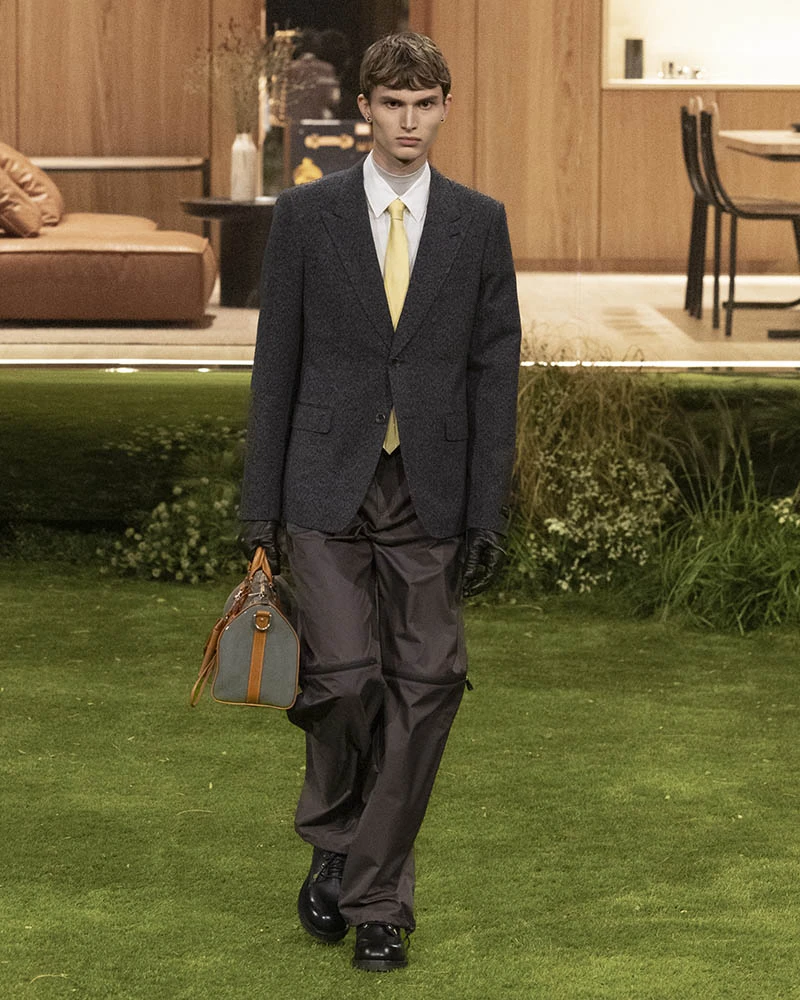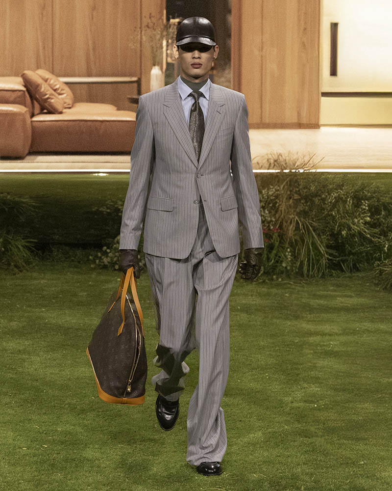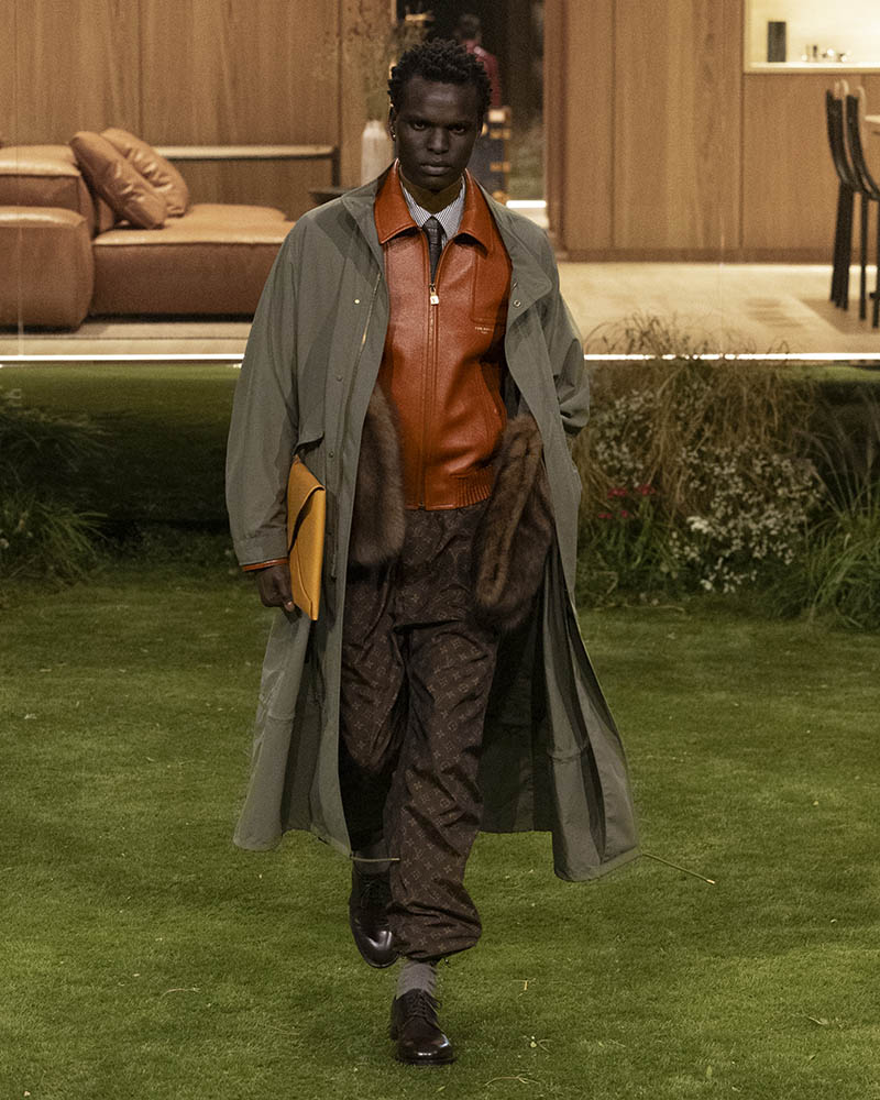 コレクションは「TIMELESS(タイムレス)」がテーマ。会場となったのは「フォンダシオン ルイ・ヴィトン」の庭に設置された建物で、「Not A Hotel」とのコラボレーションによってデザインされたプレハブ住宅が、未来の暮らしに向けたタイムレスな空間として構想されました。