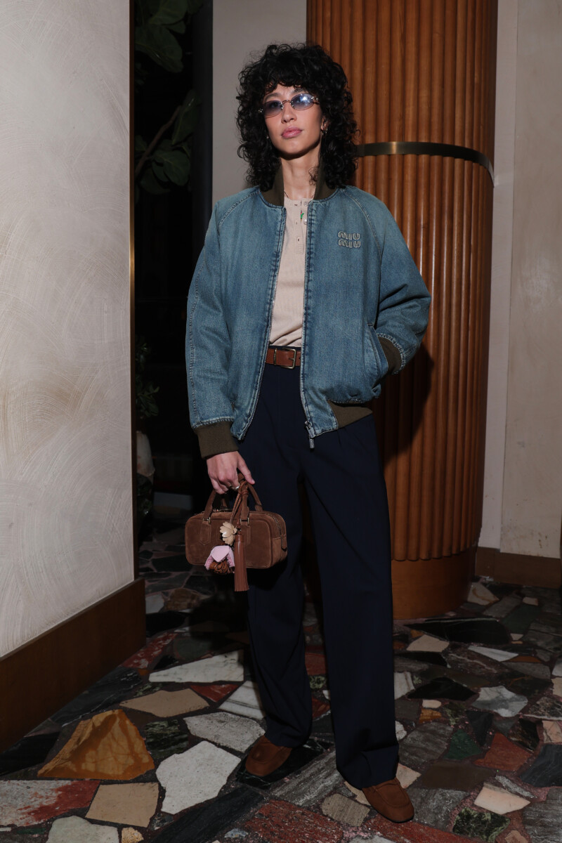 PARIS, FRANCE – OCTOBER 06: Sateen Besson attends the Miu Miu Dinner Party at Gigi as part of the Paris Fashion Week Womenswear S/S 2026 on October 06, 2025 in Paris, France. (Photo by Jacopo M. Raule/Getty Images for Miu Miu)