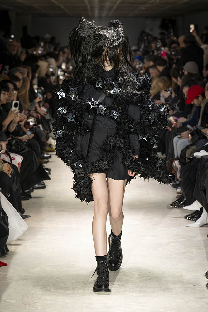 ノワール ケイ ニノミヤ(NOIR KEI NINOMIYA)のテーマは「DARK BLOOMING」。ブランドを象徴する黒の世界から花が咲き開くイメージのコレクションです。
