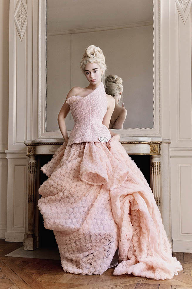 着想源となったのは、マリー・アントワネット。18世紀の宮廷の華やかさと、ブランドのシグネチャーである十二単(じゅうにひとえ)の日本の姫をイメージした“Mononoké(もののけ)”スタイルの出会いが、今シーズンの世界観を形作っています。