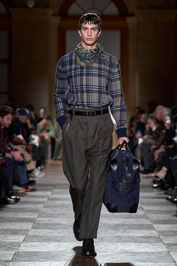 モチーフではチェックが豊富に登場し、とりわけクラシックなタータンなどが目を引いた。控えめでありながら印象を左右するネクタイも存在感を示している。シャツの中に滑り込ませたり、ラフに結んだりと、着こなしの幅を広げるアクセサリーとして、効果的に取り入れられていた。