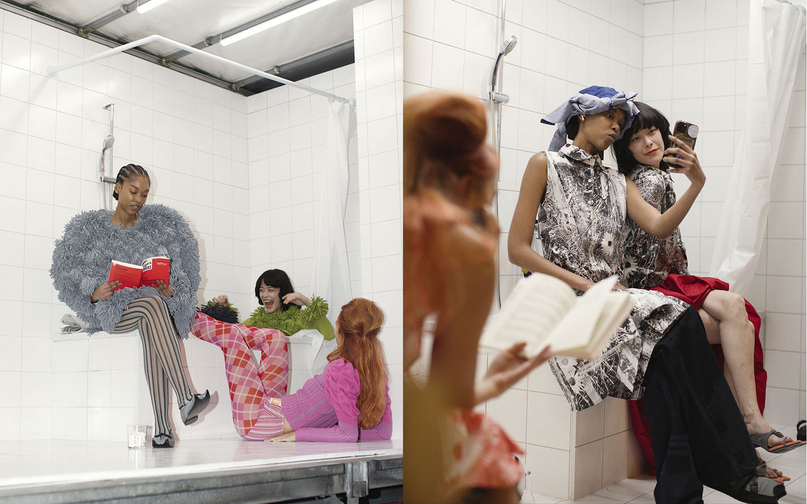 毎回、奇抜なアイデアのプレゼンテーションを見せてくれるパウラ カノヴァス デル ヴァス(PAULA CANOVAS DEL VAS)。今回は、カフェの前にトラックを停め、荷台のコンテナをバスルームに変えた空間でパフォーマンスを展開しました。これは、“親密さと可視性の緊張関係を探る”というコンセプトに基づく演出です。