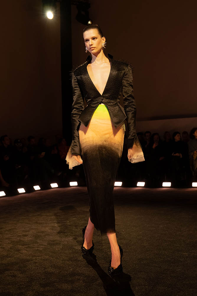 コレクションは鳥や爬虫類を想起させ、ロマンティックでありながら妖艶。フェザーやレースの幻想的なドレスの中に甘美な毒を感じさせます。