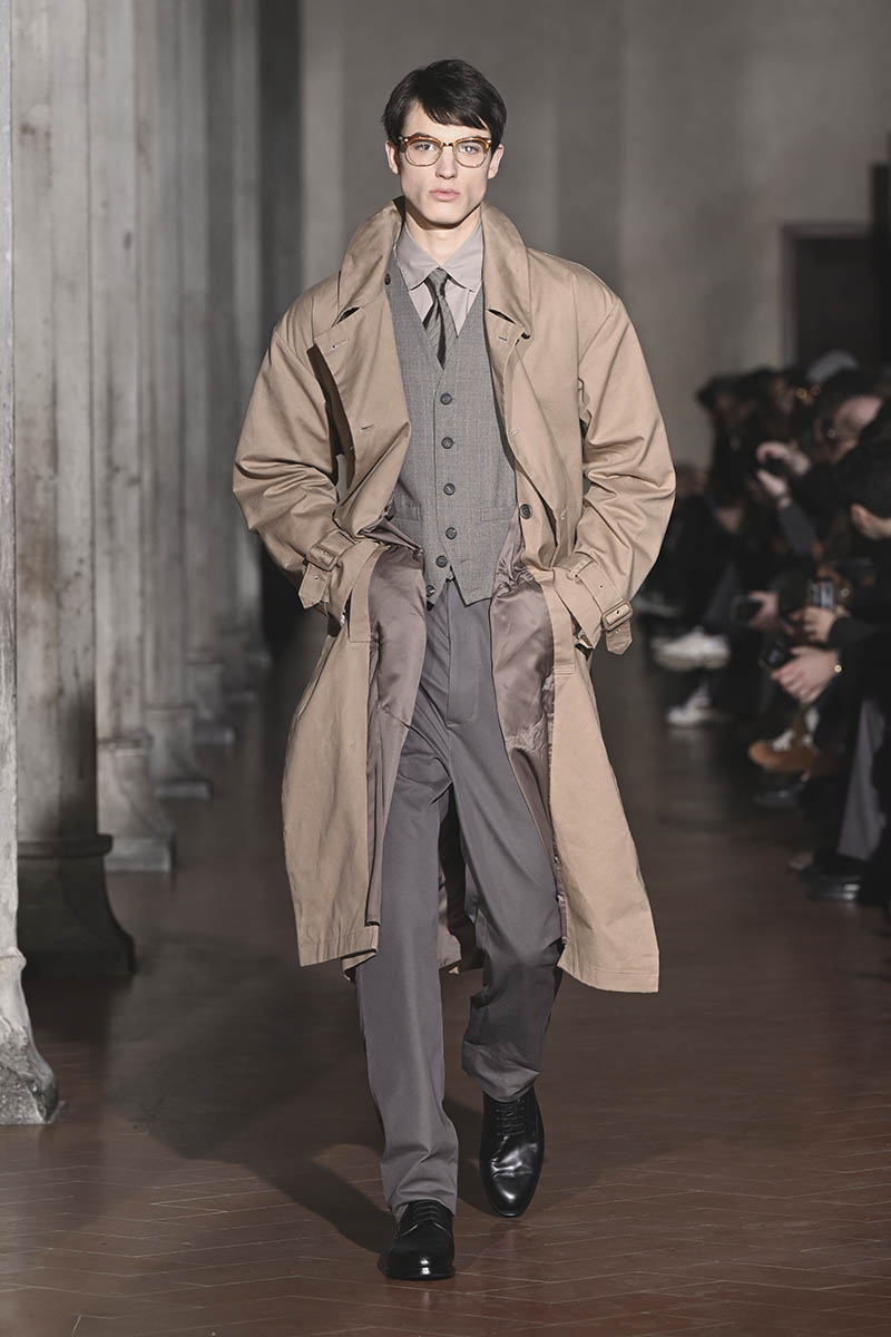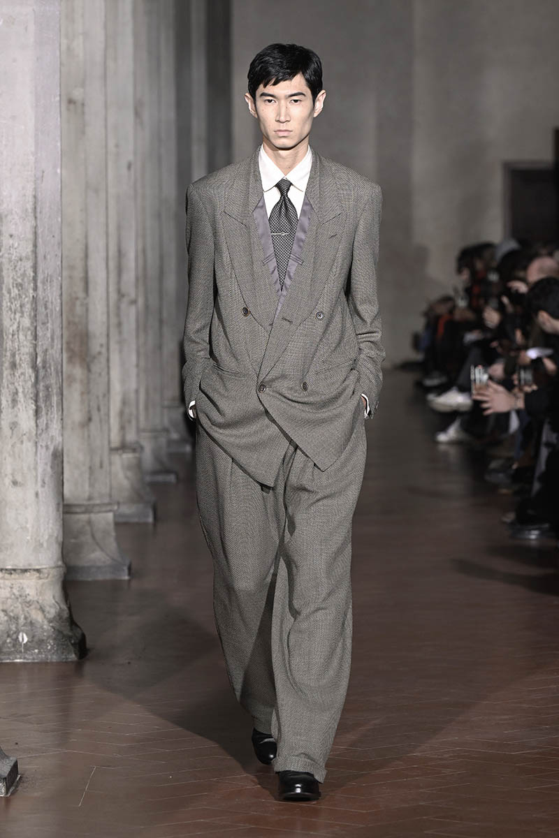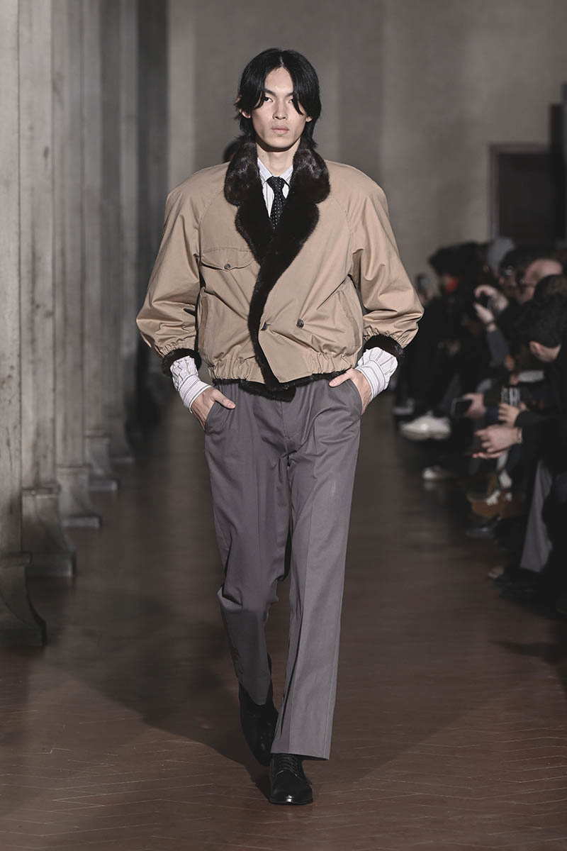 イタリアのフィレンツェで開催された「第109回 ピッティ・イマージネ・ウオモ(Pitti Immagine Uomo)」で、ゲストデザイナーの大月壮士さんが手がけるソウシオオツキ(SOSHIOTSUKI)が2026年秋冬コレクションを発表しました。大月さんにとっては、ヨーロッパにおける初のランウェイショーです。