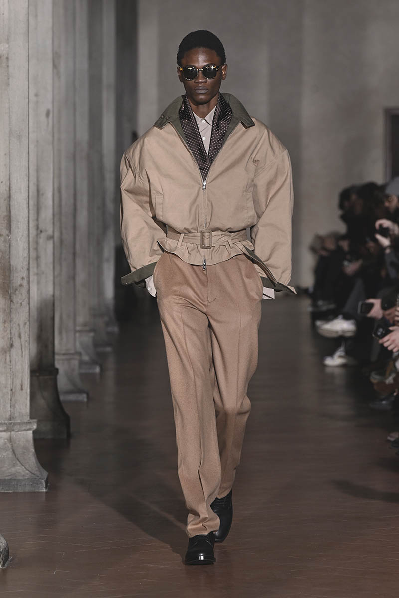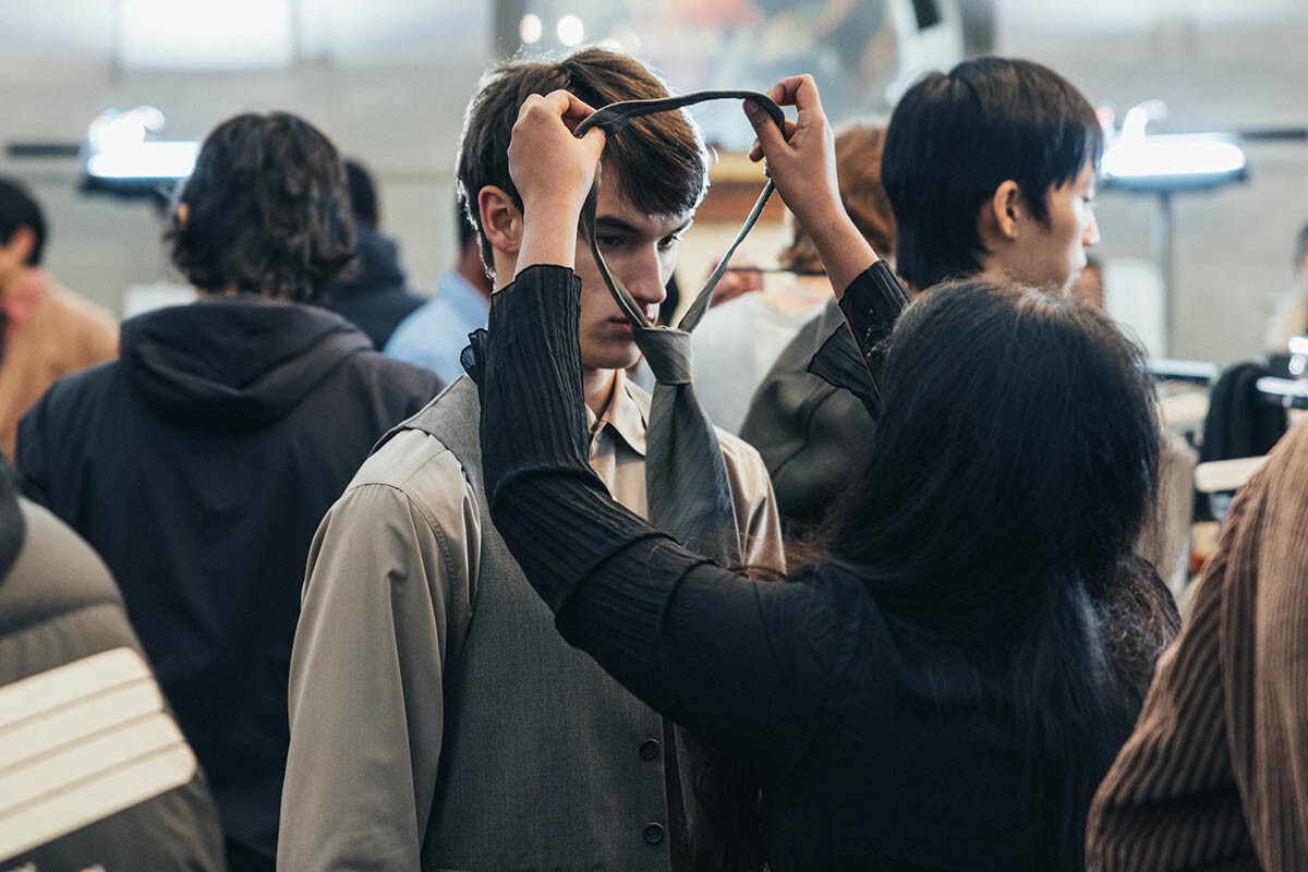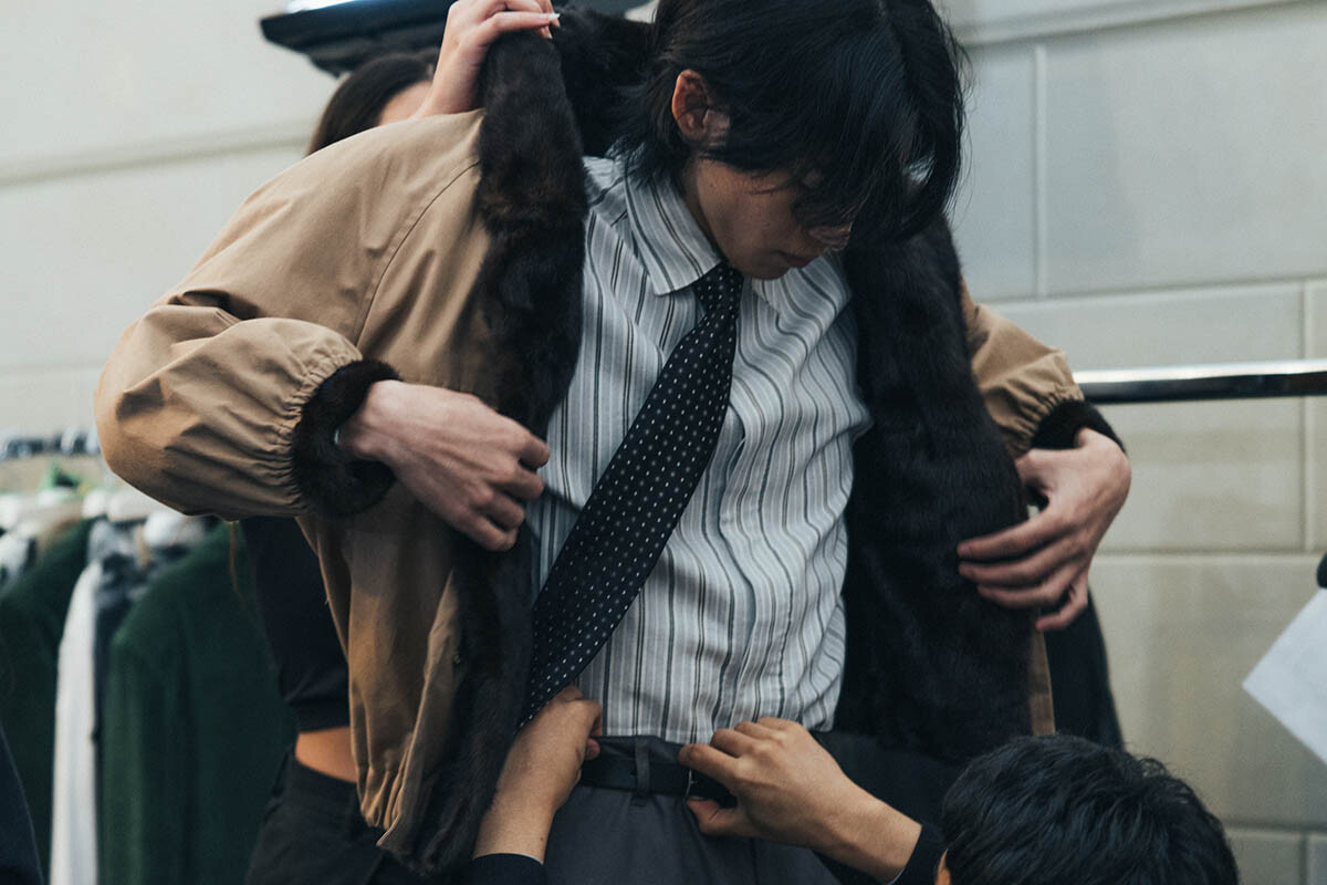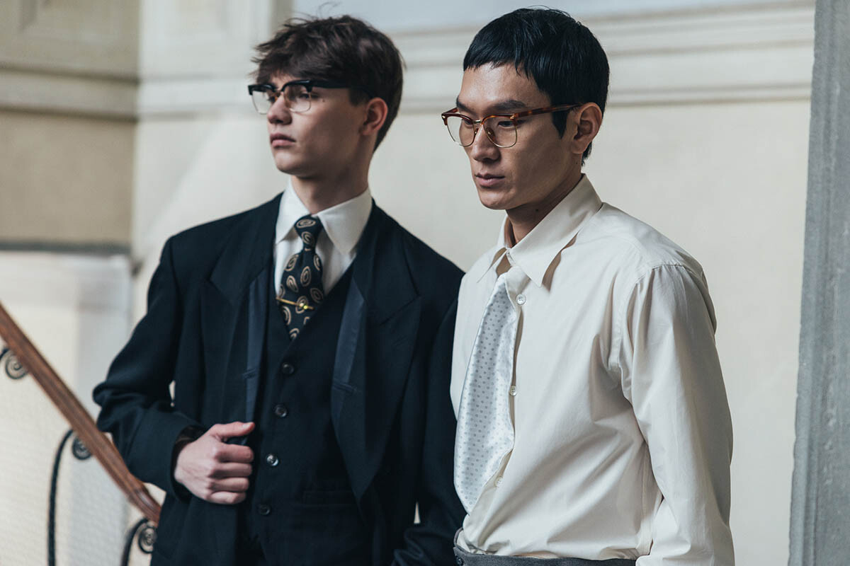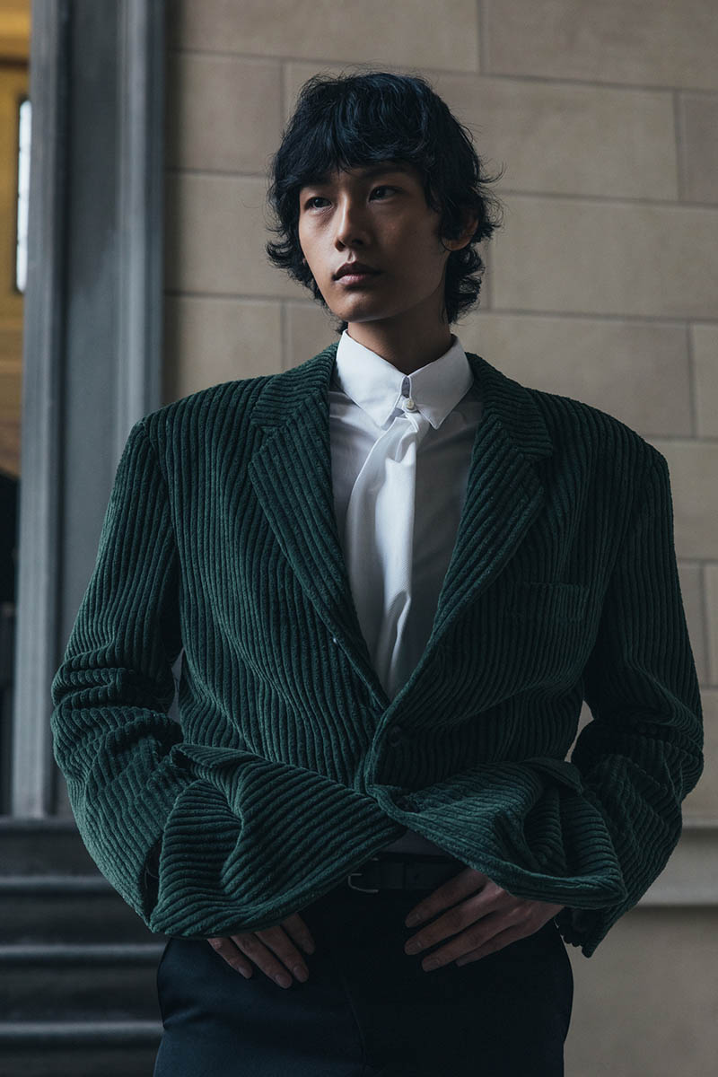 SOSHI OTSUKI(以下S):これまでは東京をベースにルックブック形式で発表してきましたが、メンズウェアの祭典として長い歴史を持ち、数多くのレジェンドデザイナーたちが招かれてきたPittiという場所でショーを行えることを、心から光栄に思っています。極東の島国で生まれ育ち、長く海外の文脈の外側に立ってきた私にとって、西洋のテーラリング文化に対するひとつのカウンターとして名を刻みたいという思いは、常に創作の根幹にありました。この場所に立てたことで、ようやく歴史の一ページに足を踏み入れられたような感覚と、「やっとここまで来た」という率直な実感の両方を噛みしめています。