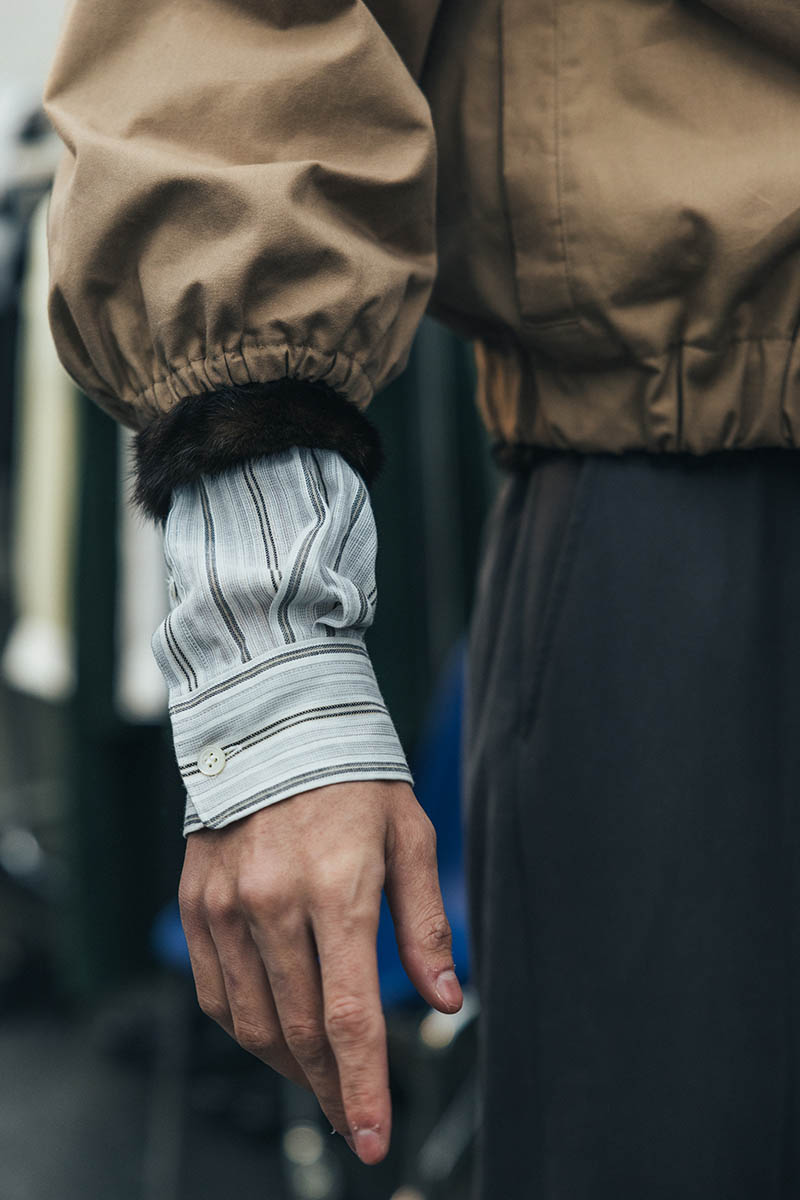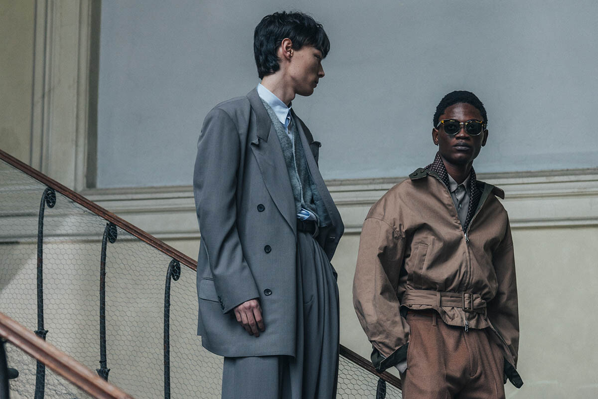 また、アートと衣服の境界を横断する「プロレタ リ アート(PROLETA RE ART)」、スペイン発のシャツブランド「カミサス マノロ(CAMISAS MANOLO)」、明治29年創業の「グンゼ(GUNZE)」とのコラボレーションによって、テーラリングを異なる領域から再考。2023年から協業を続けている、素材と表現を行き来するアーティスト「コウタ オクダ(KOTA OKUDA)」が制作したピースも登場しました。