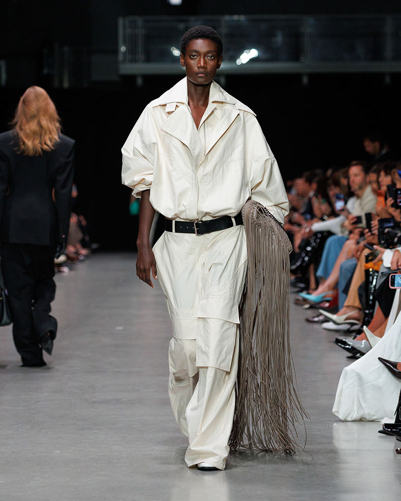 ステラ マッカートニー(STELLA McCARTNEY)のテーマは「Come Together」。言わずと知れたビートルズの名曲のタイトルでもあり、ショーの冒頭ではオスカー俳優のヘレン・ミレンが歌詞をナレーションする演出も。そこには、人類、動物、そして母なる地球のために、団結を呼びかけるメッセージが込められています。