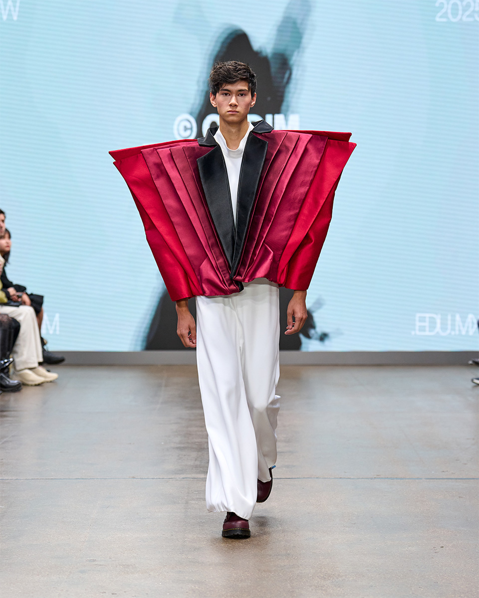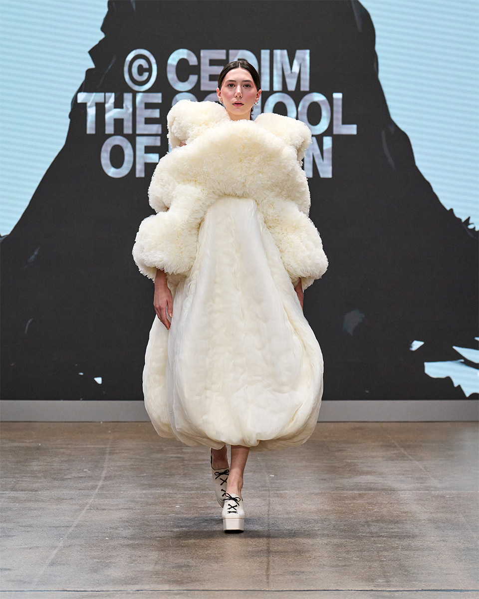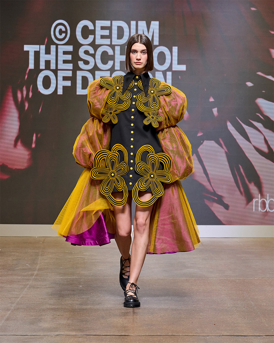 1978年にメキシコで設立され、グラフィックデザインやファッション、建築をはじめとした様々な専門性のあるカリキュラムで人気のセディムデザインスクール。今シーズンはルセロ・イサベル・レイエス・マルティネス、レスリー・バレリア・ソテロ・ペレスなど7人の新鋭デザイナーが、「PLAY」というテーマを様々な視点から探求したコレクションを発表した。失われた幼少期の比喩としてエプロンを制作したレイエスや、送られなかった手紙を洋服としてデザインしたソテロなど、感情や身体の再生を表現したルックが際立った。