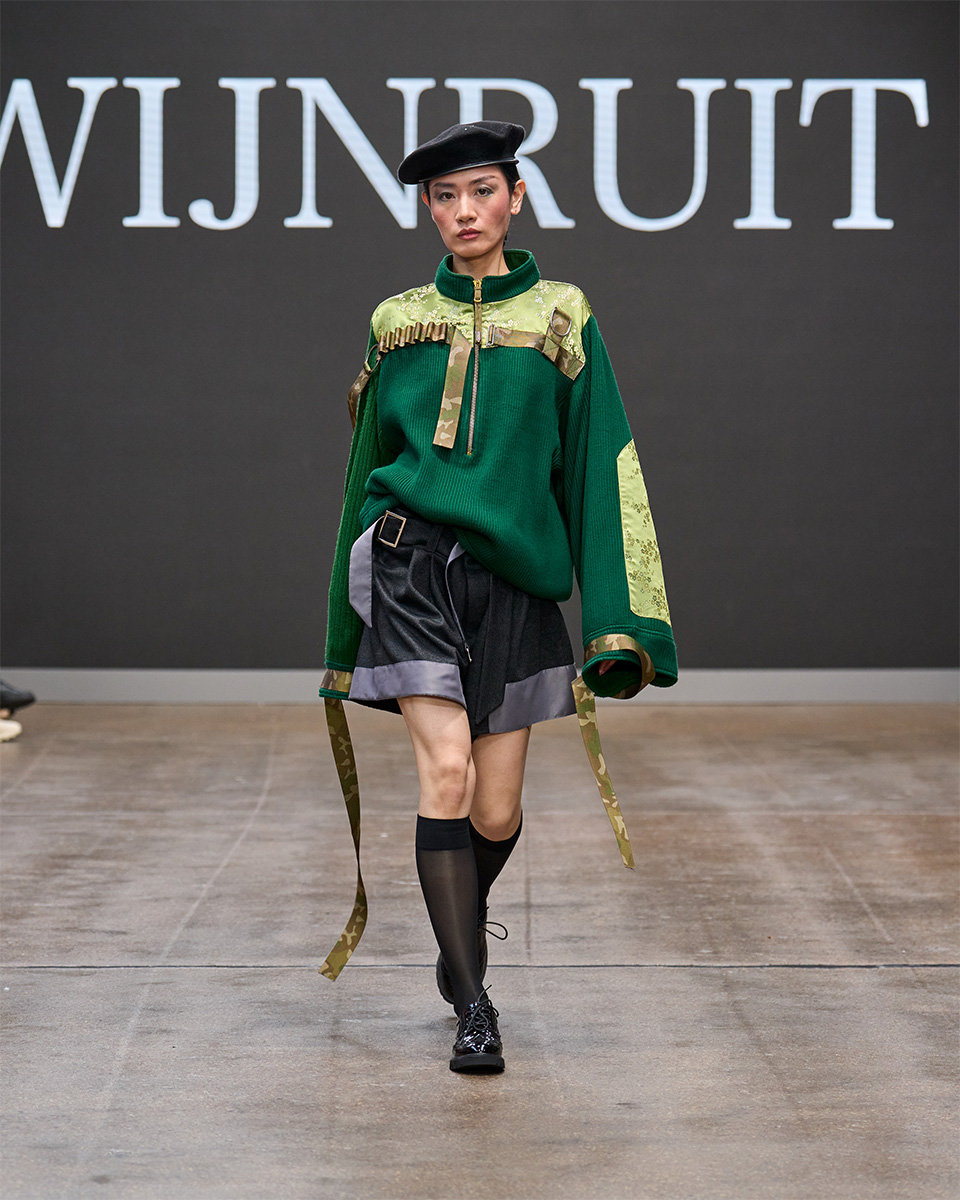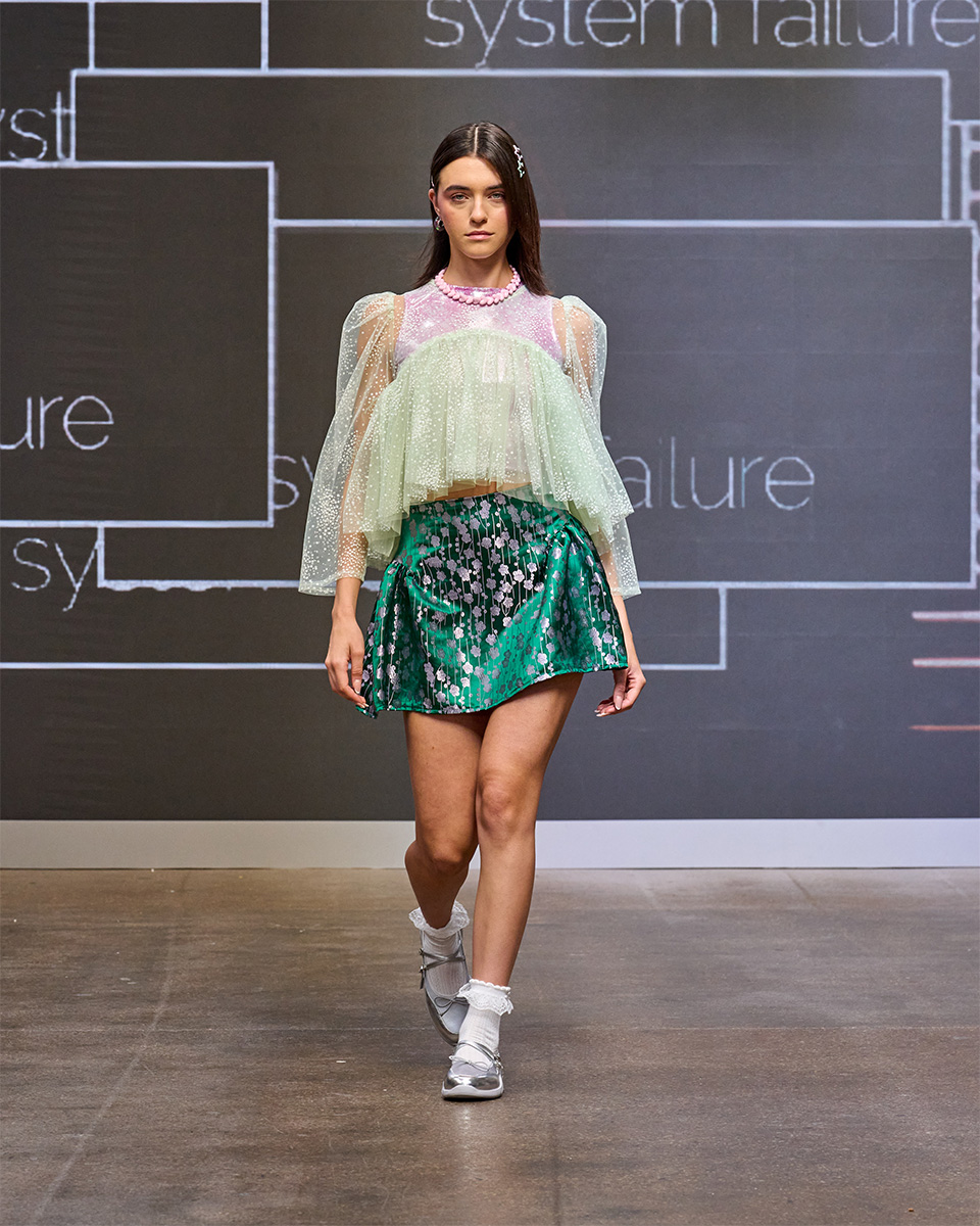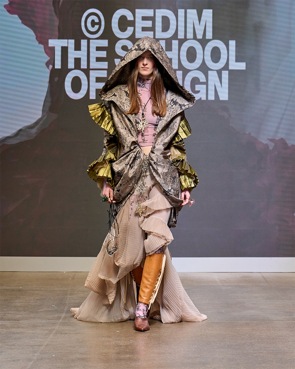 1978年にメキシコで設立され、グラフィックデザインやファッション、建築をはじめとした様々な専門性のあるカリキュラムで人気のセディムデザインスクール。今シーズンはルセロ・イサベル・レイエス・マルティネス、レスリー・バレリア・ソテロ・ペレスなど7人の新鋭デザイナーが、「PLAY」というテーマを様々な視点から探求したコレクションを発表した。失われた幼少期の比喩としてエプロンを制作したレイエスや、送られなかった手紙を洋服としてデザインしたソテロなど、感情や身体の再生を表現したルックが際立った。