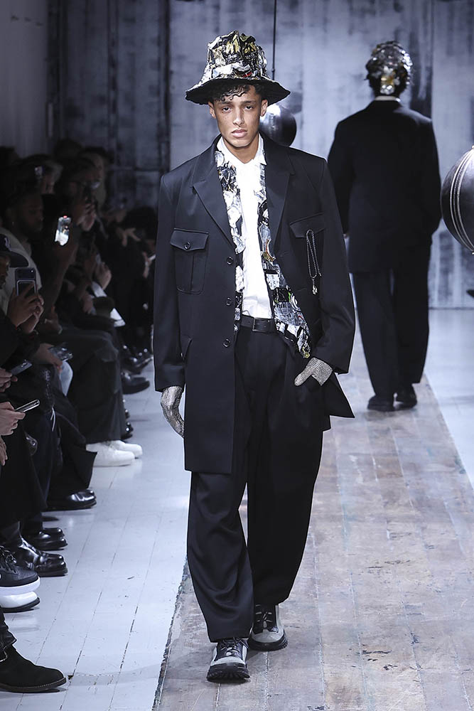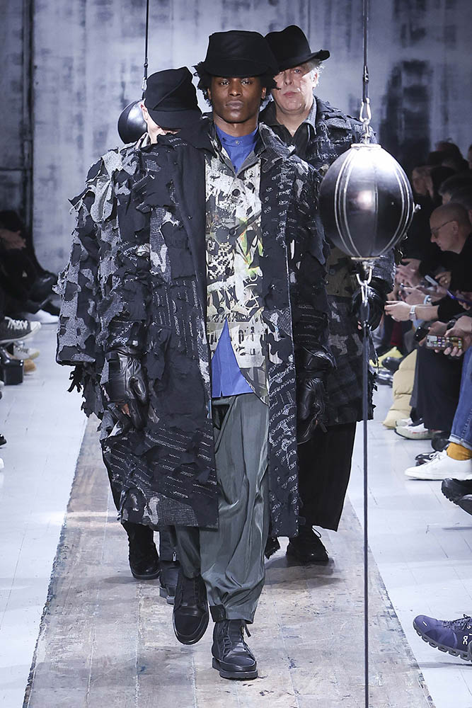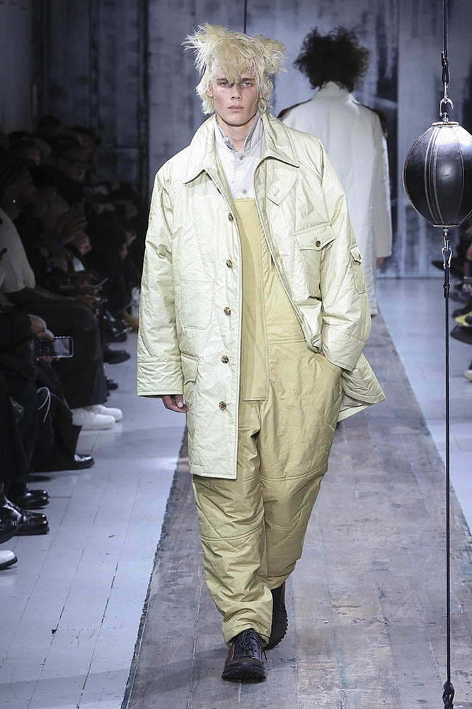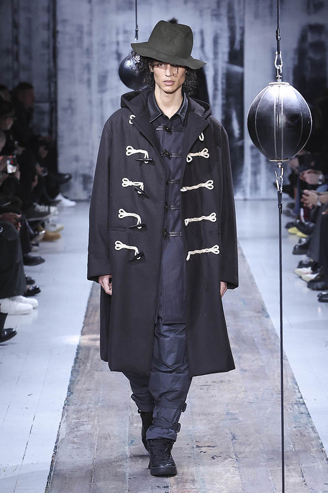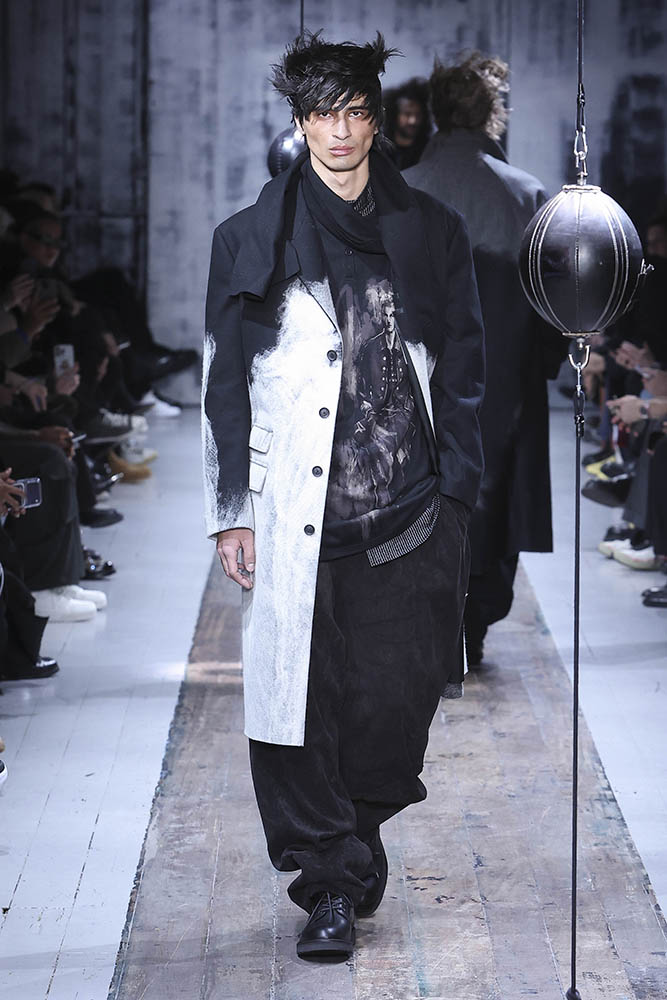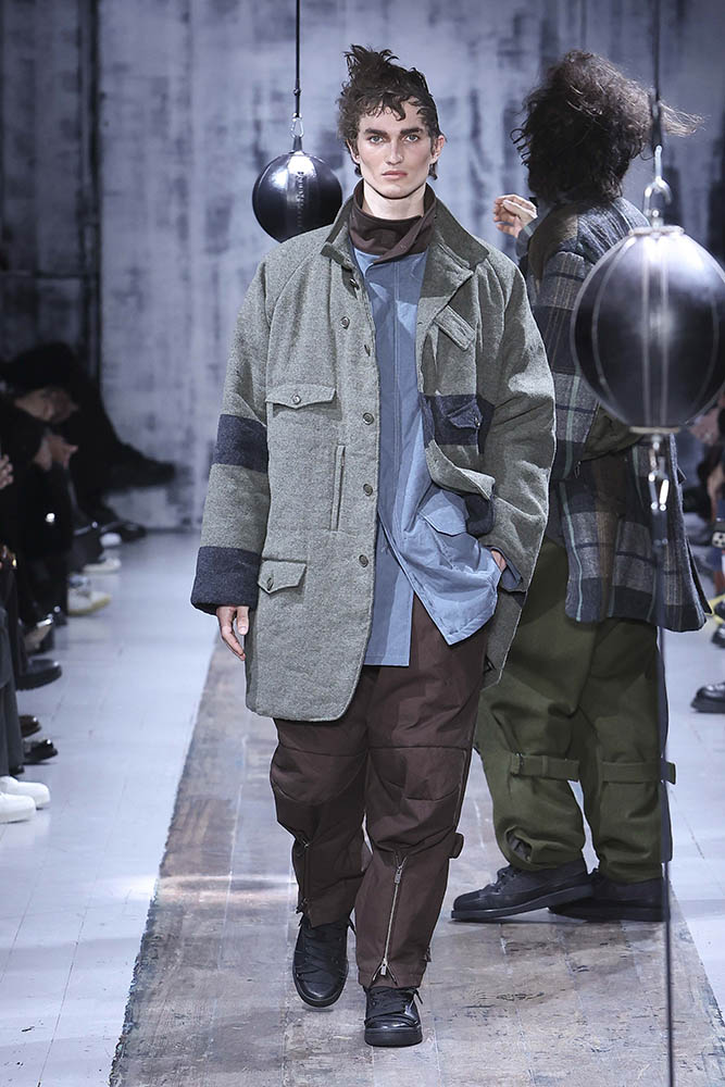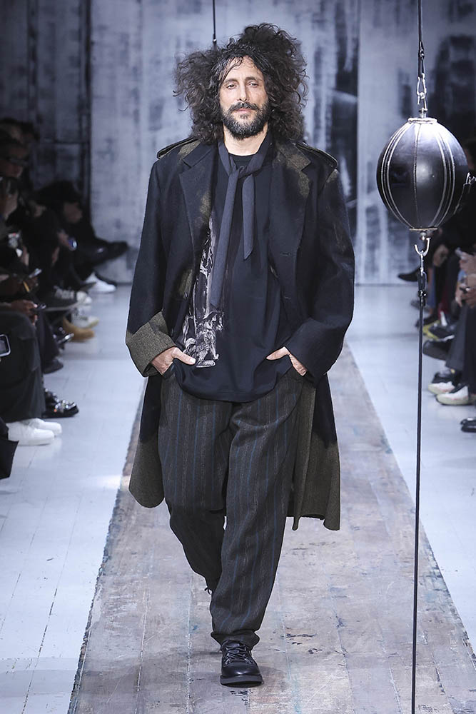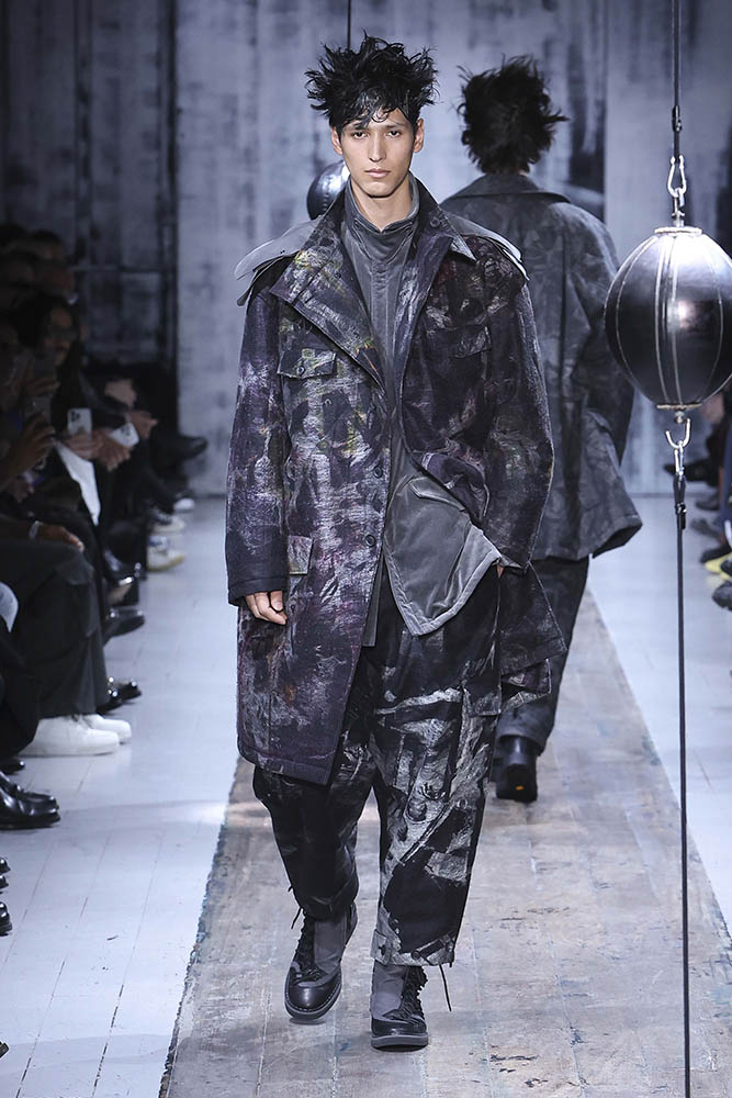 ヨウジヤマモト プールオム(YOHJI YAMAMOTO POUR HOMME)は、ランウェイにボクシング用トレーニングバッグを設置。”戦う男”のイメージを印象づけました。