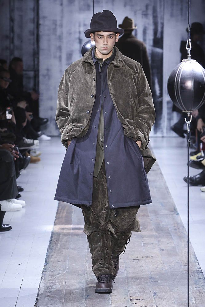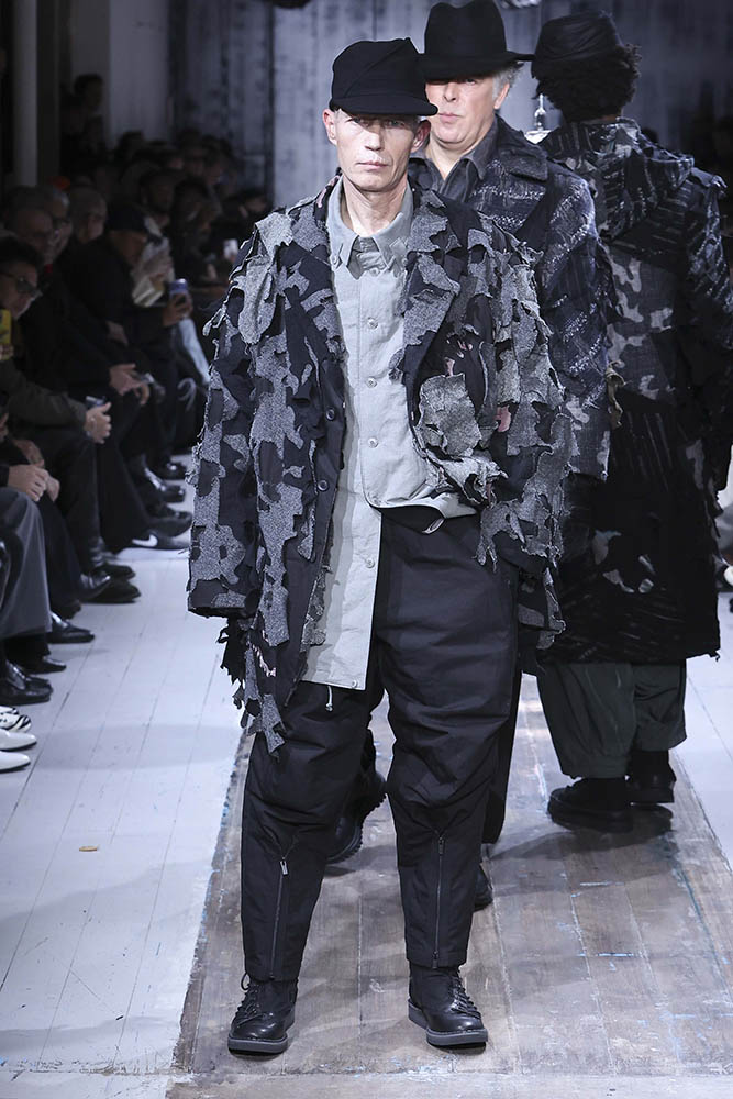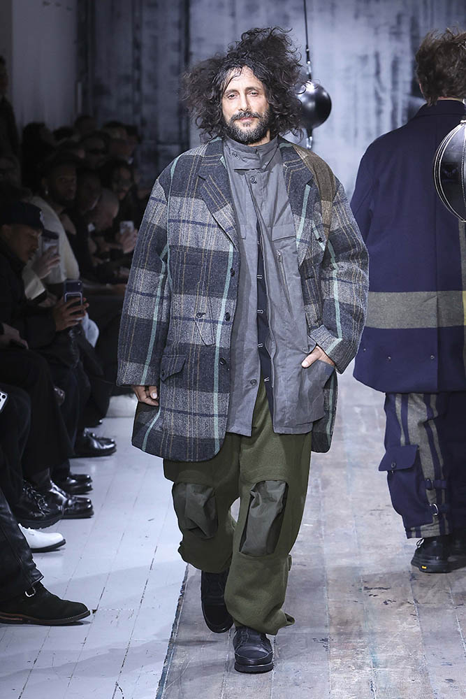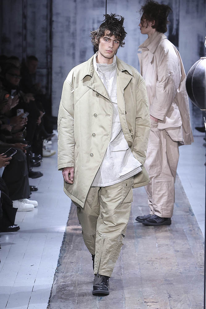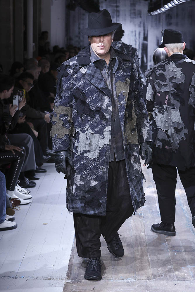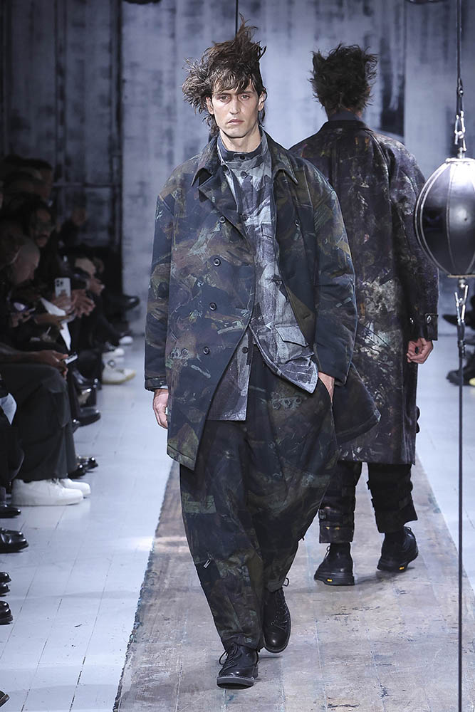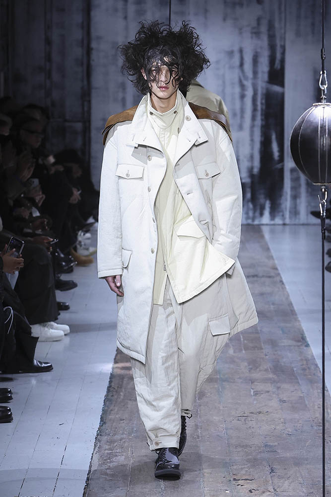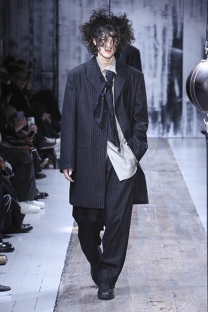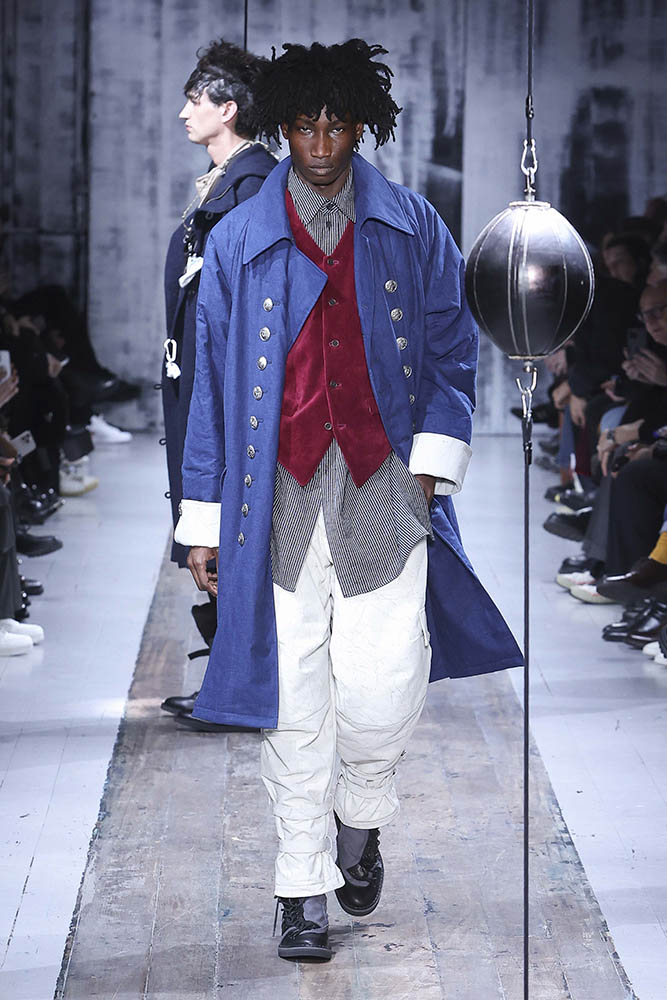 ヨウジヤマモト プールオム(YOHJI YAMAMOTO POUR HOMME)は、ランウェイにボクシング用トレーニングバッグを設置。”戦う男”のイメージを印象づけました。