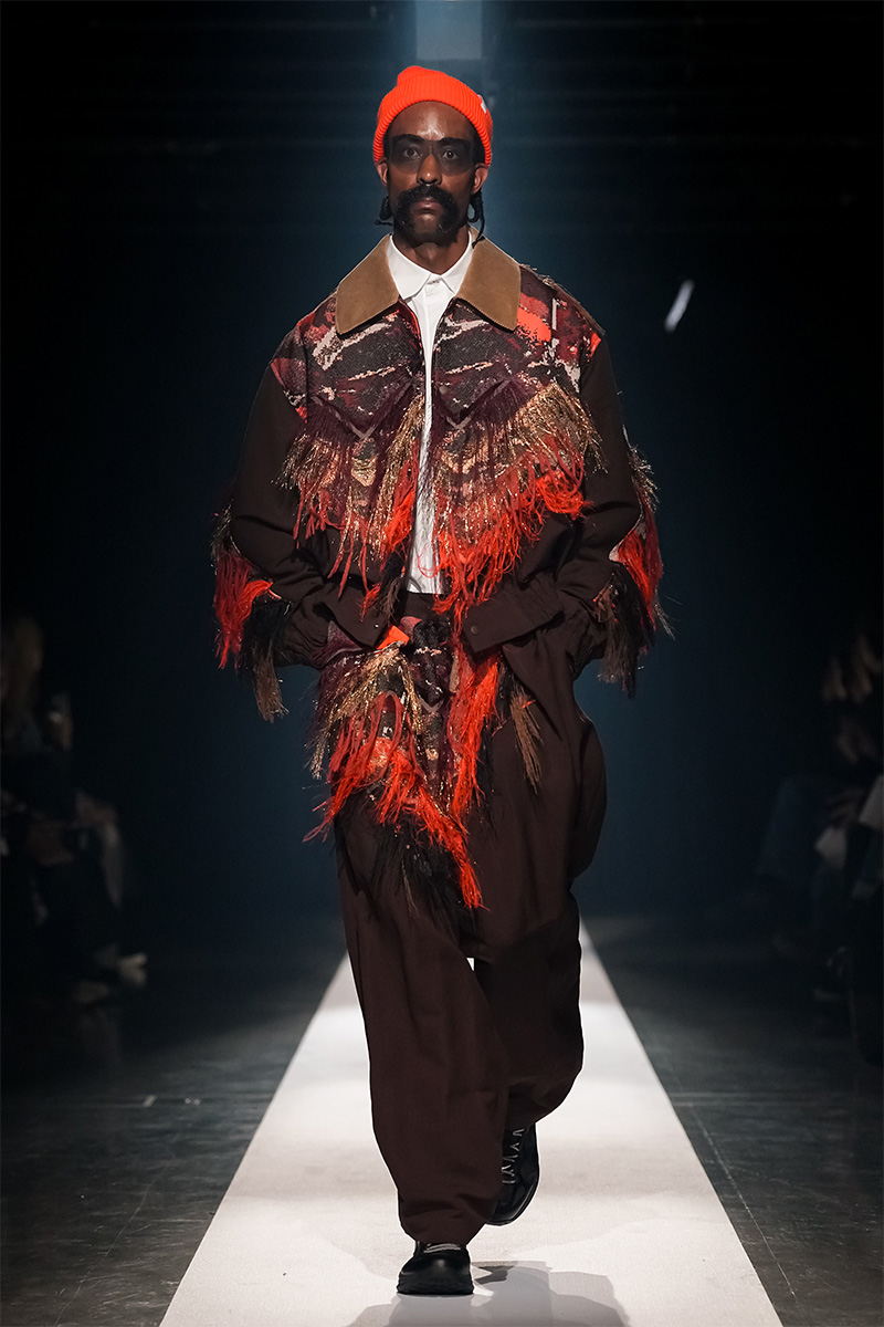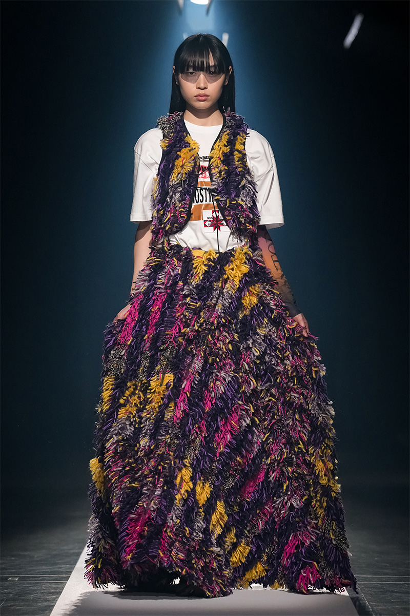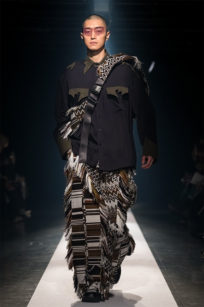フリンジやトライバルな素材が使われた装飾的なルックもある。だが、それもまた装飾という役割を担うパーツとして、構造の中に組み込まれているかのようだった。