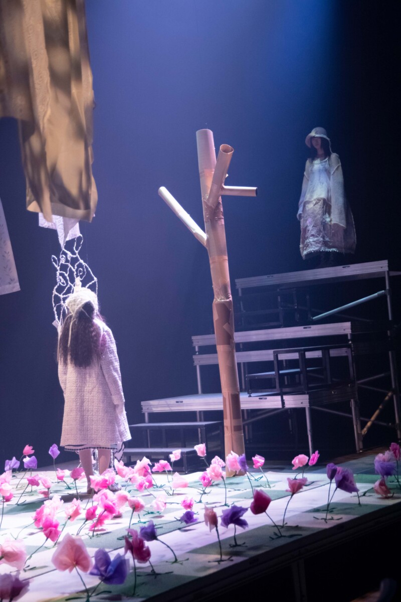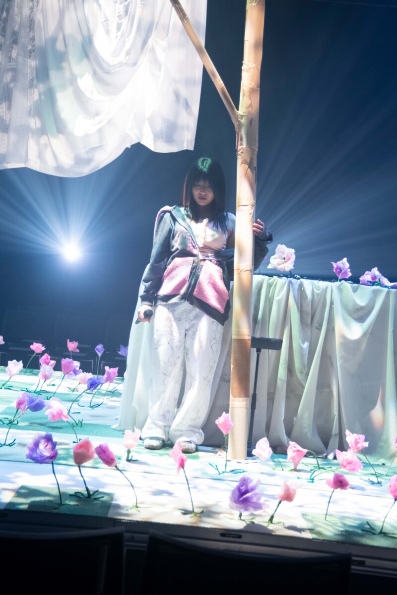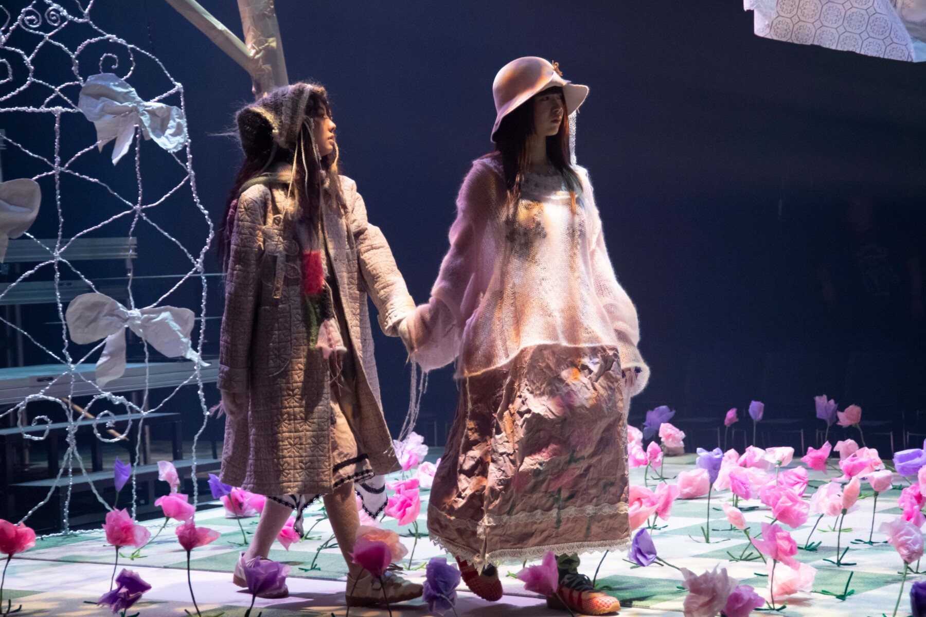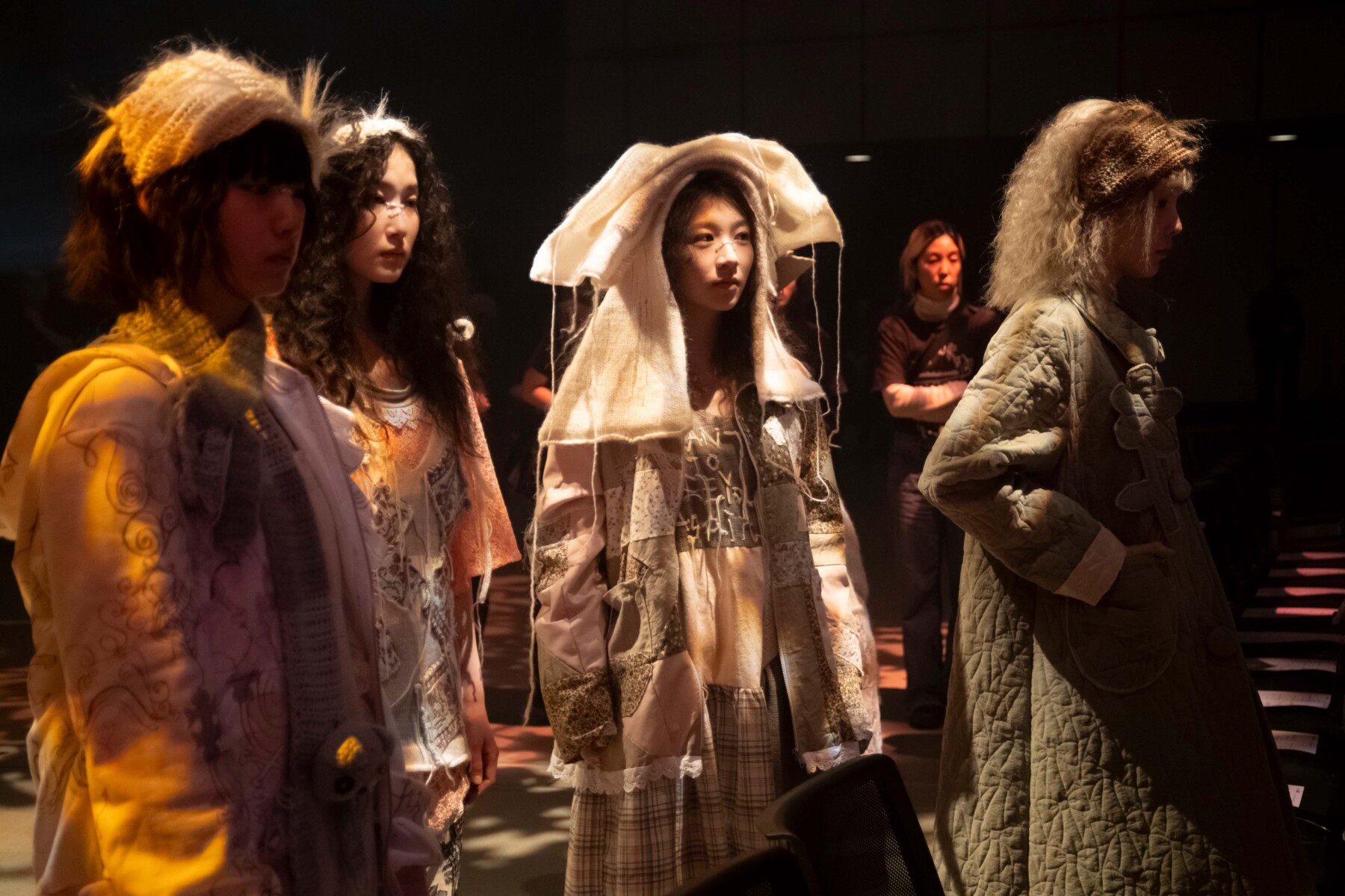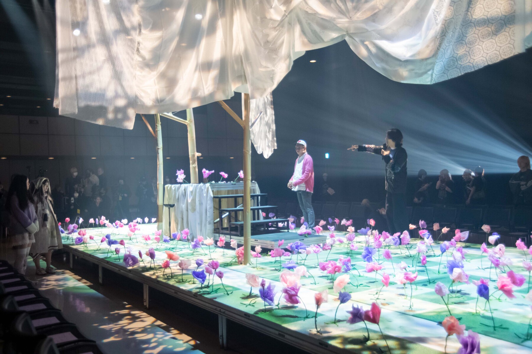 舞台は死後の世界をイメージ。当日の歩行案には、対峙してくる人(モデル)と逆行しながら見つけた大好きな人を地上に戻すというコンセプトが込められていたという。