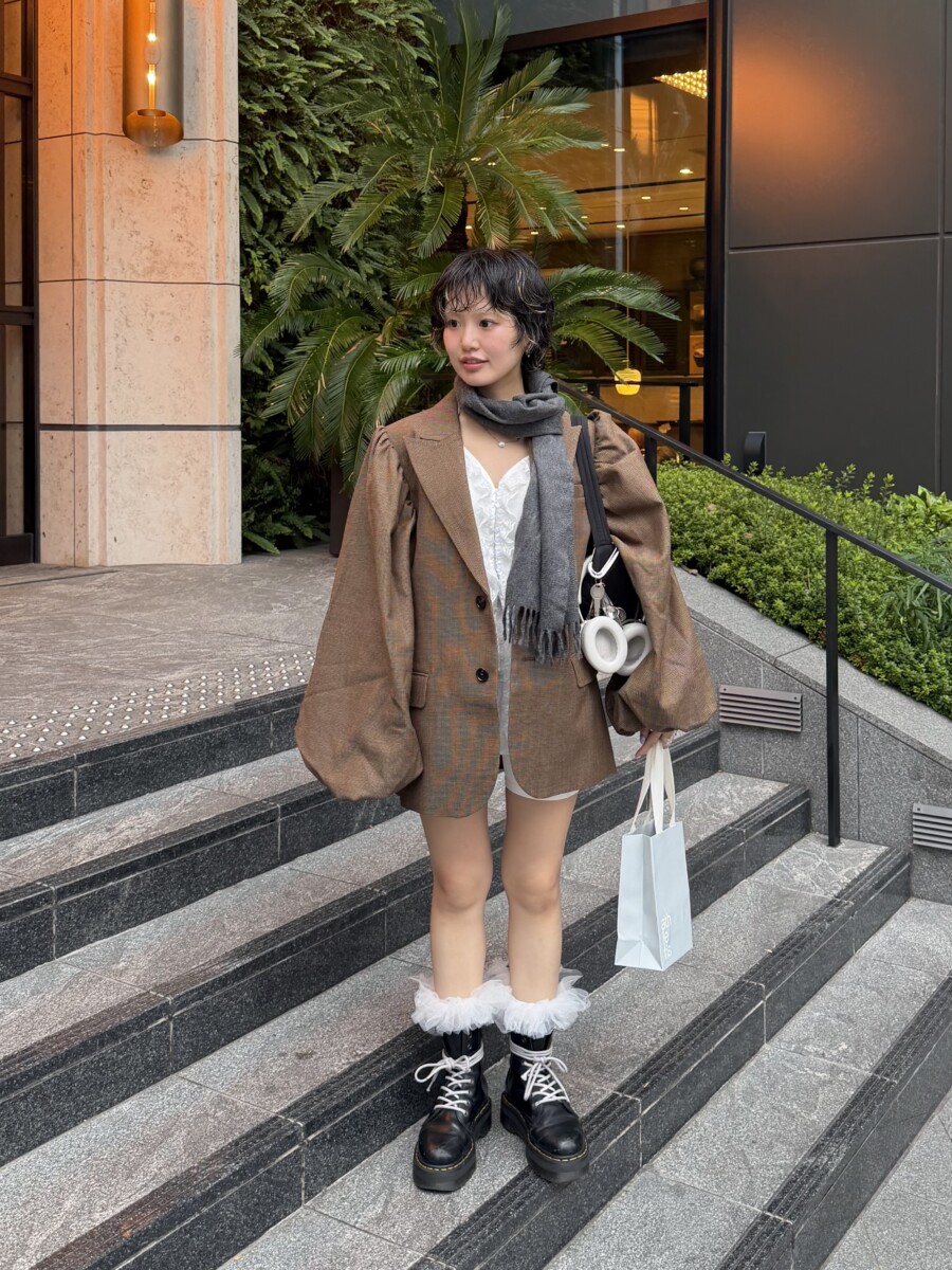 JURK shop tokyoでは、毎シーズン「VIVIANO(ヴィヴィアーノ)」の受注会を行なっていて、その際に注文しました。なんといっても袖がお気に入りです。クラシックなアイテムですが、あえてカジュアルな格好に合わせたり、ガーリーに落とし込むのが好み。メンズアイテムなのに肩がぴったりなところも嬉しい!