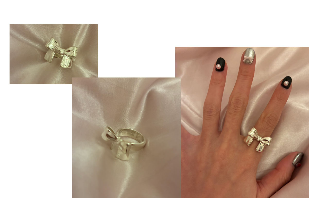 ハンドメイドならではの上品な光沢感と、絶妙なバランスのリボンデザインがお気に入り。naokitomizukaならではのモードさの中に、可愛さと繊細さがさりげなく垣間見えるところも魅力です。