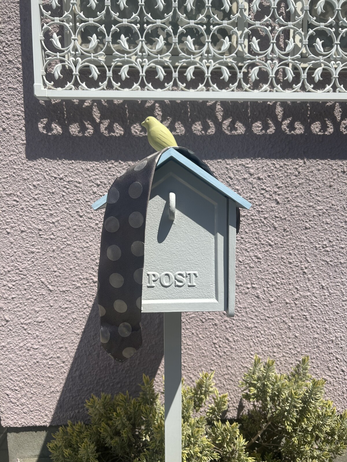 「エスメラルダサービスドデパートメント」で購入しました。大きめのドットが規則正しく並び、ダークな雰囲気がありつつも、可愛らしさを感じるデザインに惹かれました。ベースカラーも落ち着いているので、挑戦しやすいネクタイです