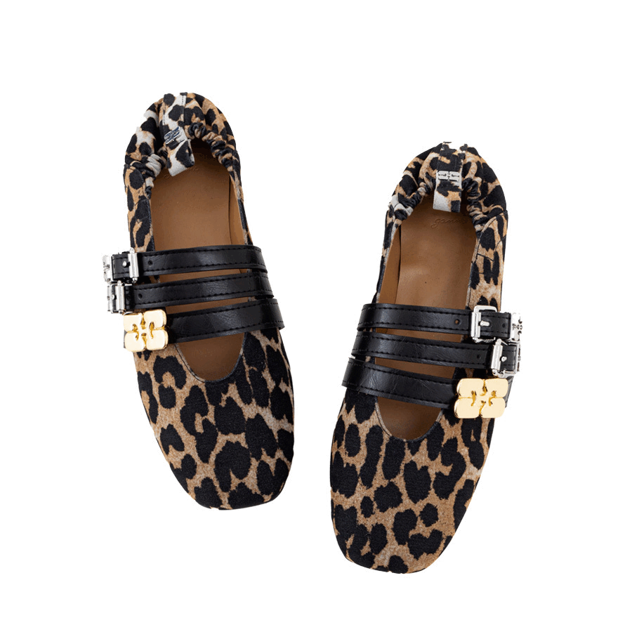 エッジを効かせたGANNIのレオパード柄フラットで足元を主役に