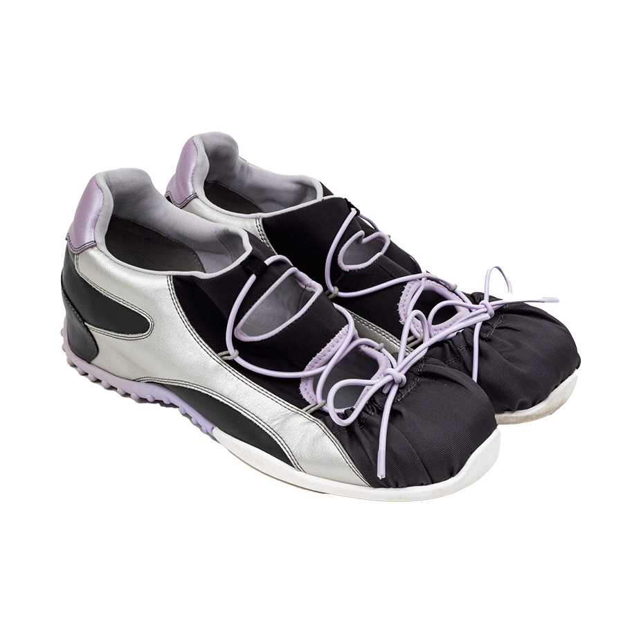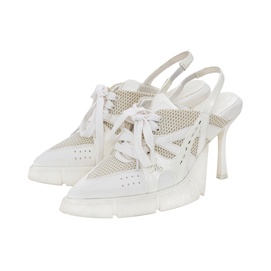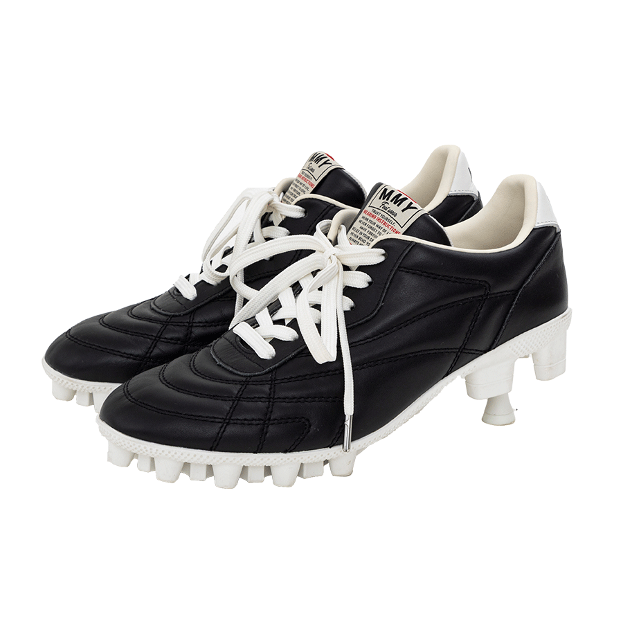 スパイクシューズのスタッドの一部が伸びたような遊び心ある新鮮なデザイン。白いヒールと光沢のあるブラックのアッパーのコントラストが洗練された雰囲気を放ち、どんなスタイルでもこれひとつでオシャレ上級者に。スニーカーのような履きやすい安定感も嬉しいポイント。 ¥52,800 Maison MIHARA YASUHIRO